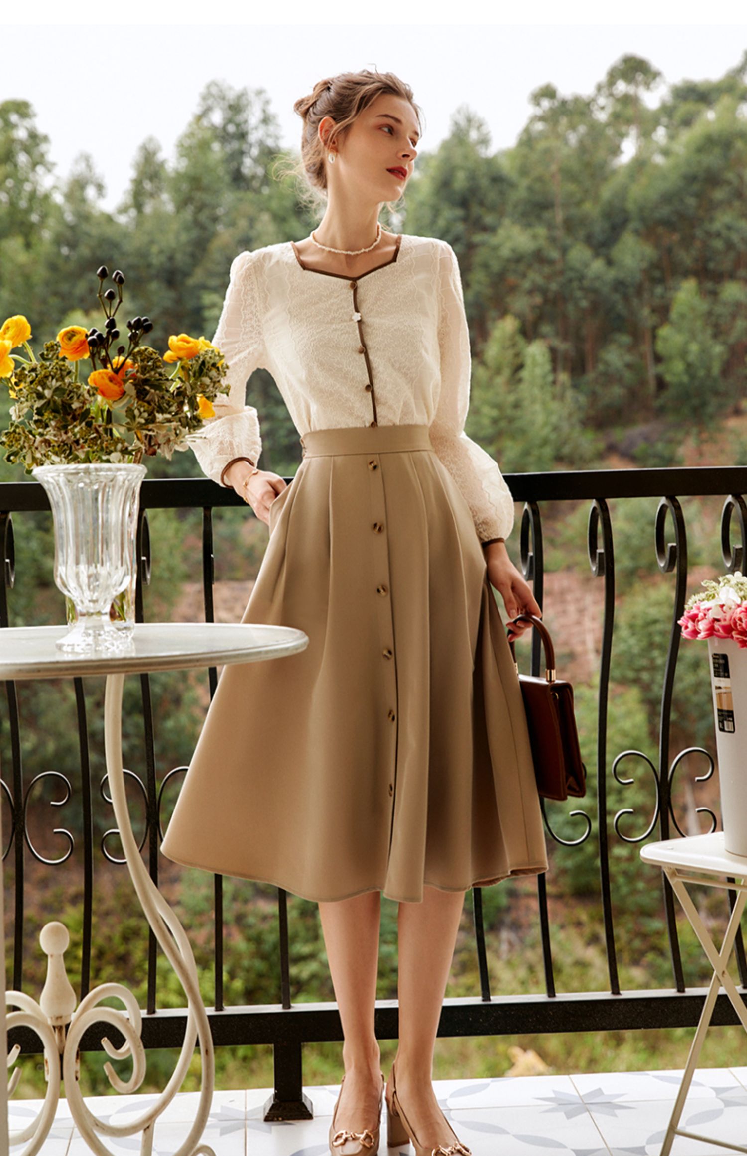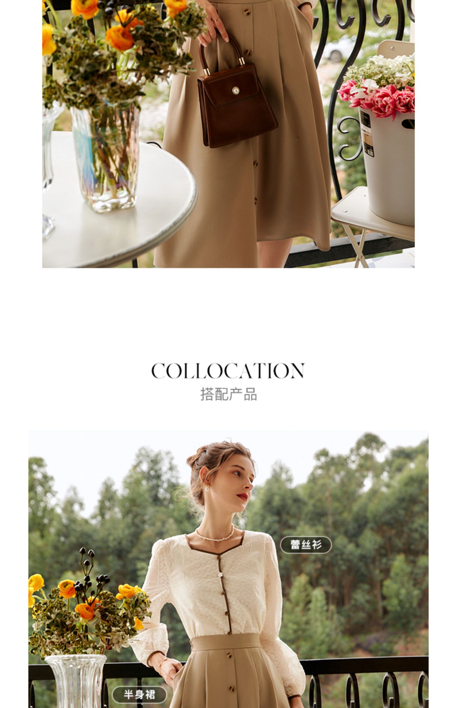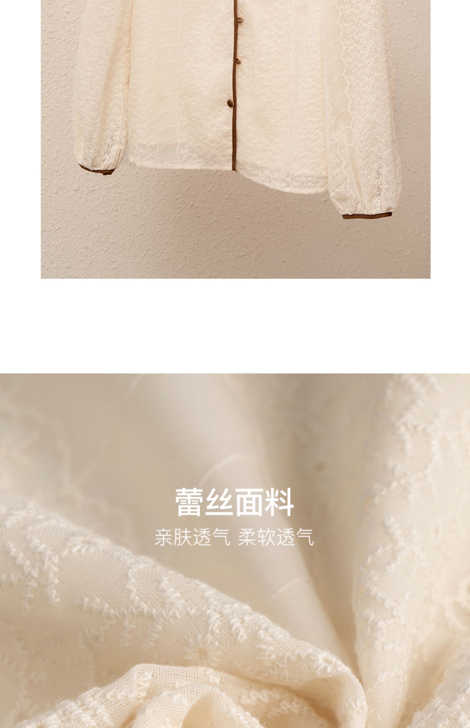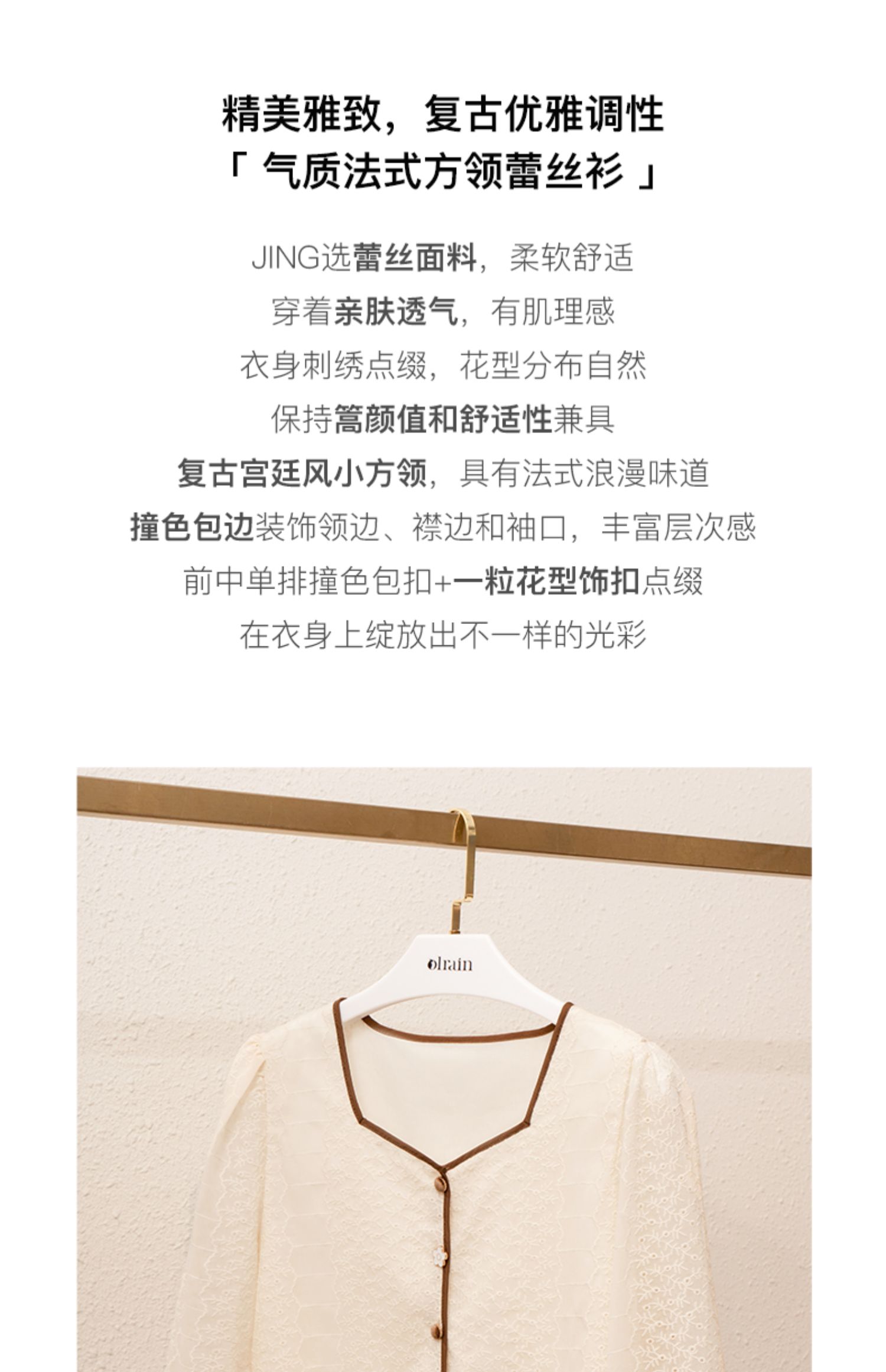 OLrain法式方领雪纺衫女秋季高级感气质蕾丝衫泡泡袖显瘦减龄上衣