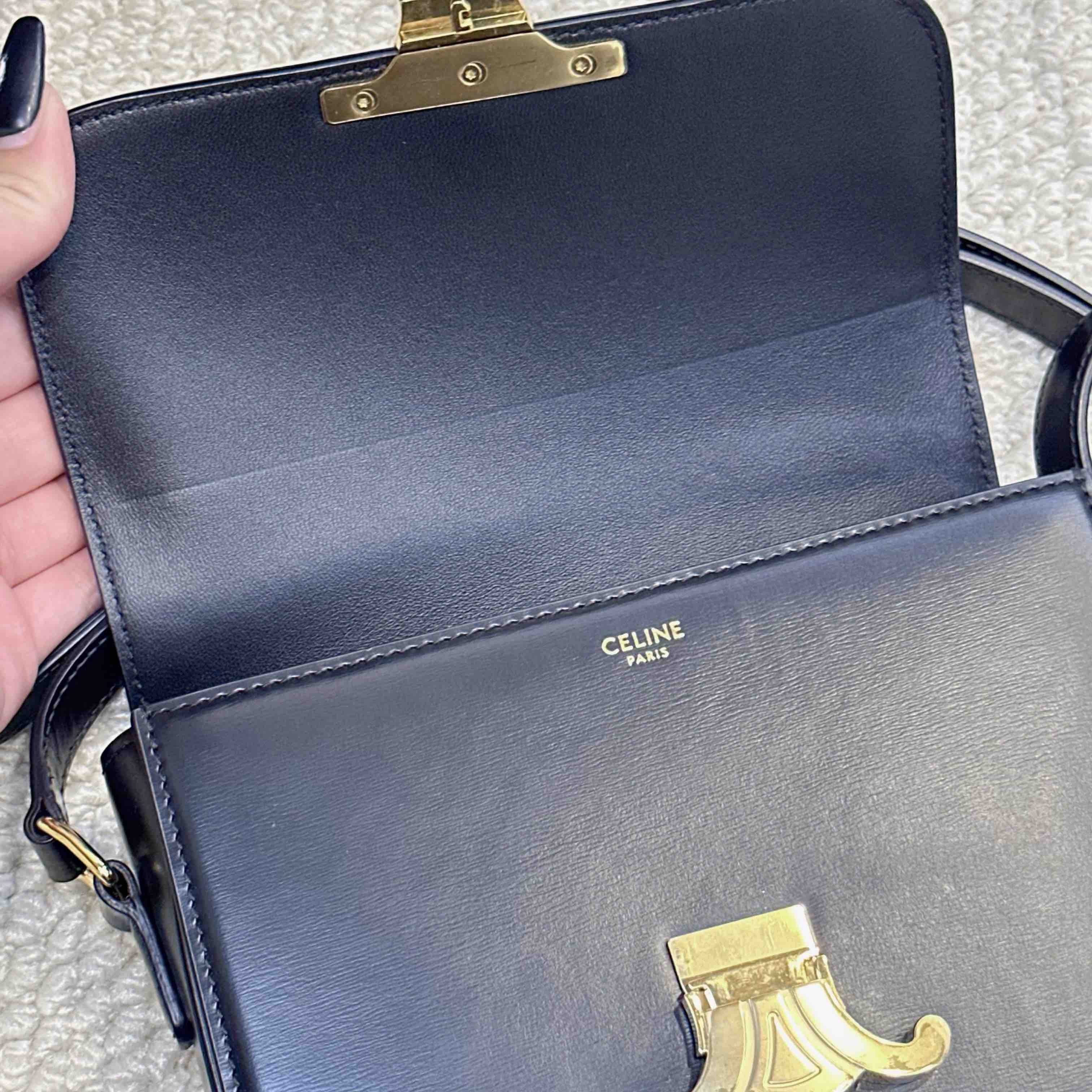【商品詳情】正品二手 Celine 黑金 box皮 小号 Teen 凯越门包🖤 99新 19x14 配件:防尘袋。金属模还在 黑金无敌气质