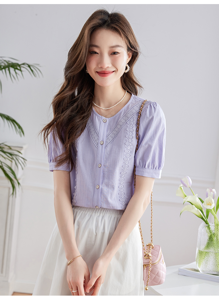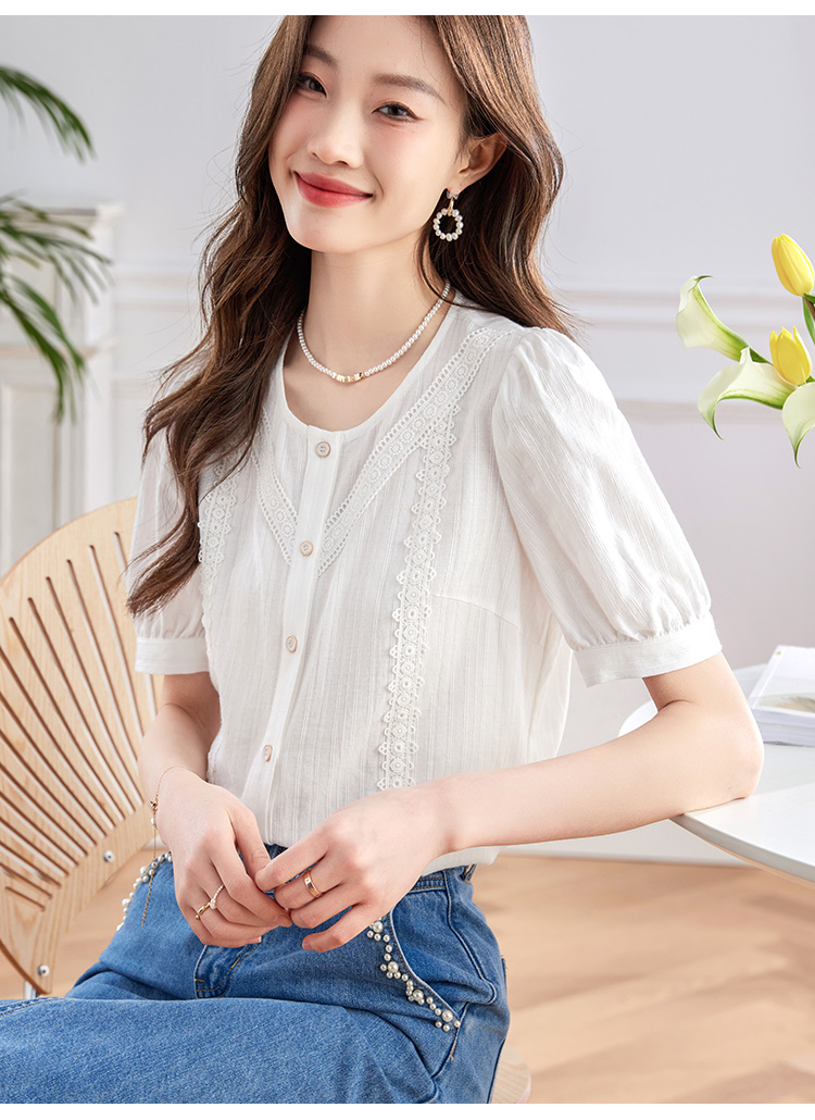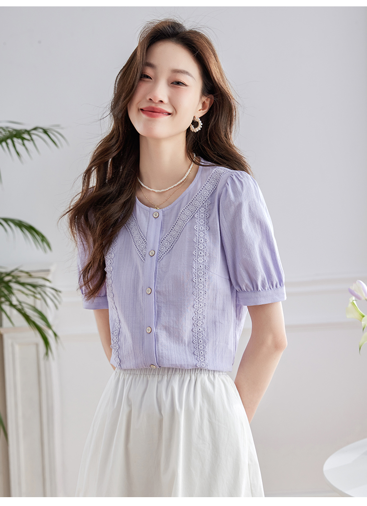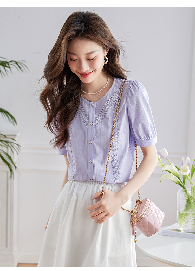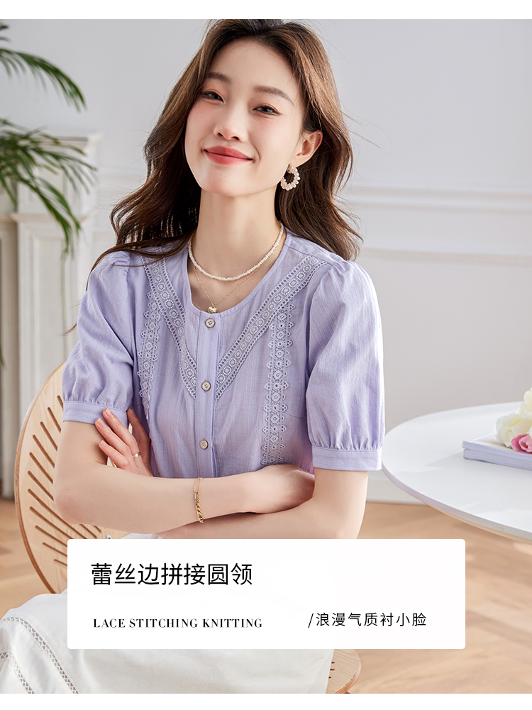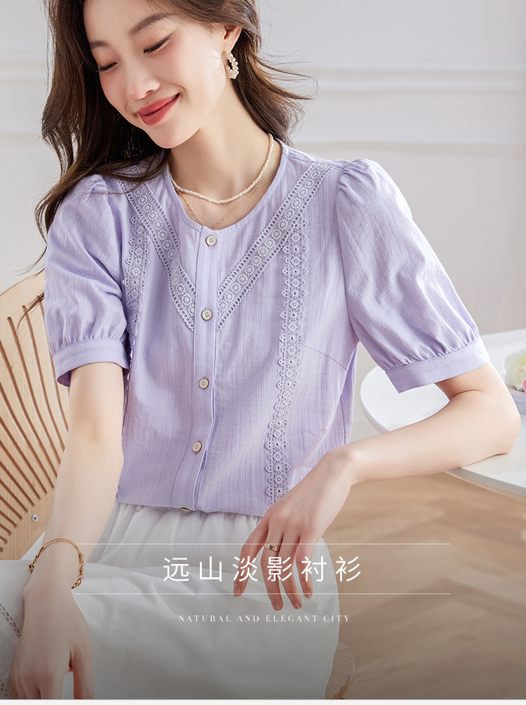【五折购】熙世界100.%亲肤棉女士衬衫2025夏季新款气质优雅法式泡泡袖上衣