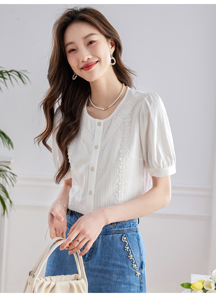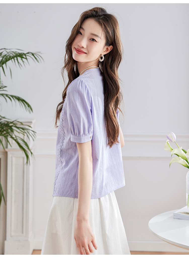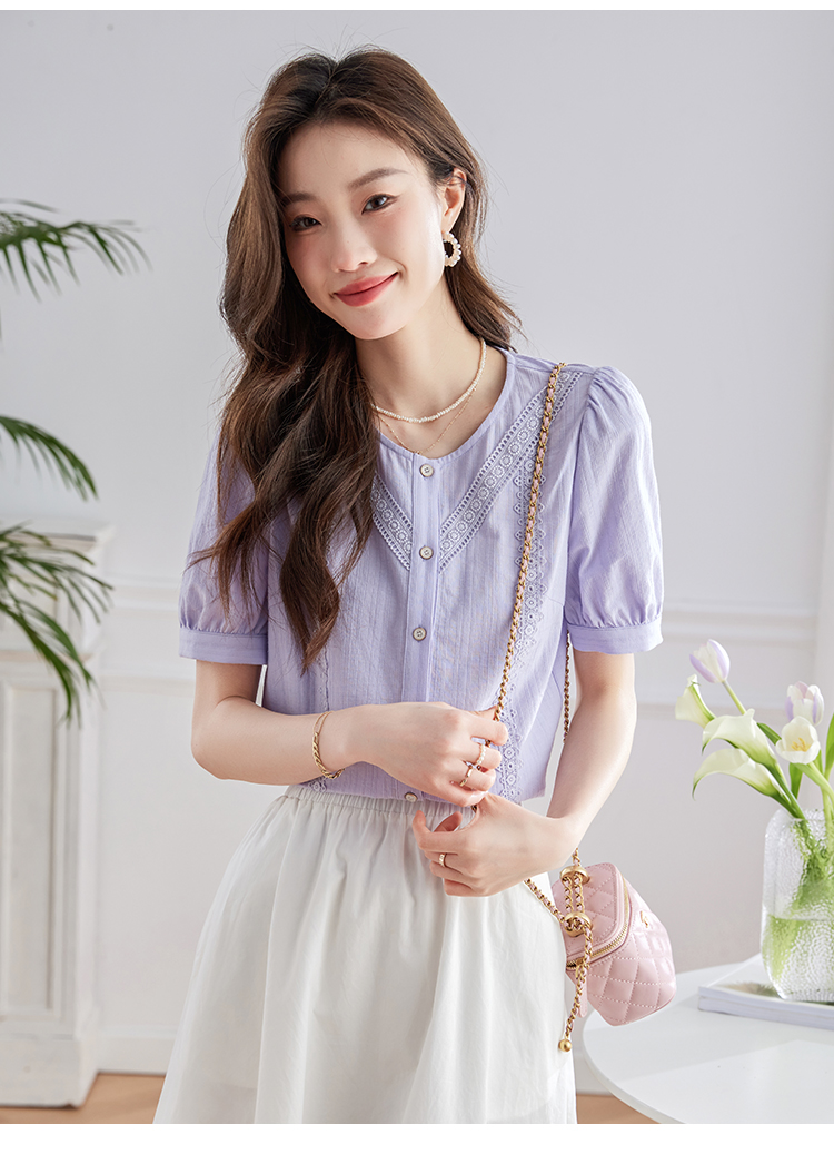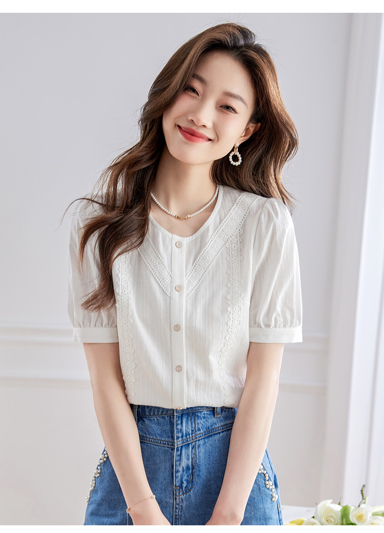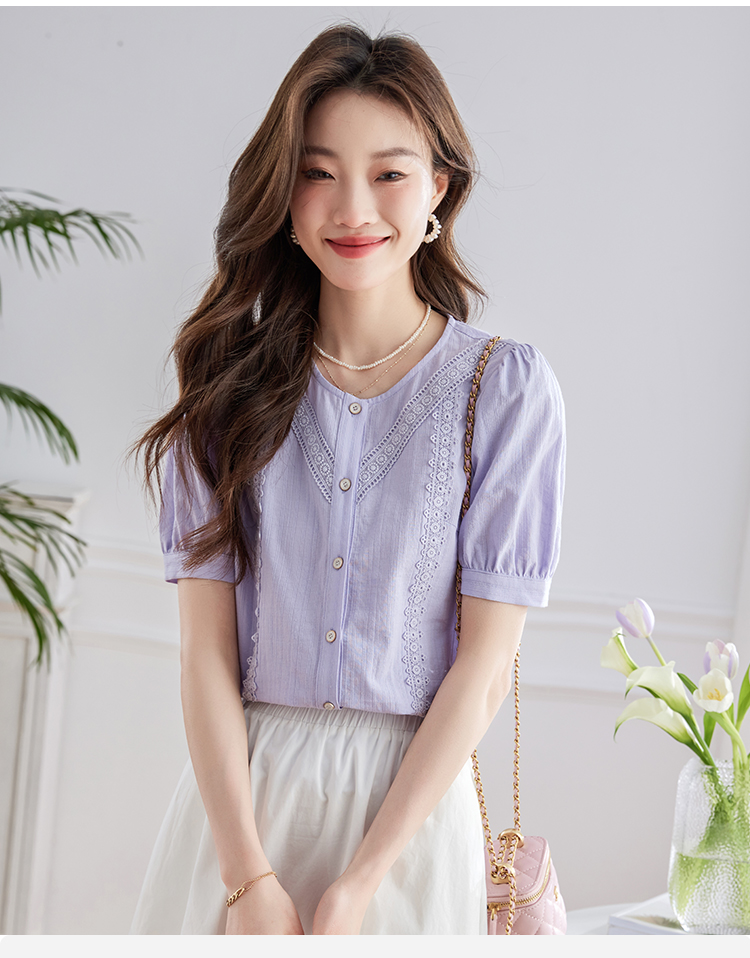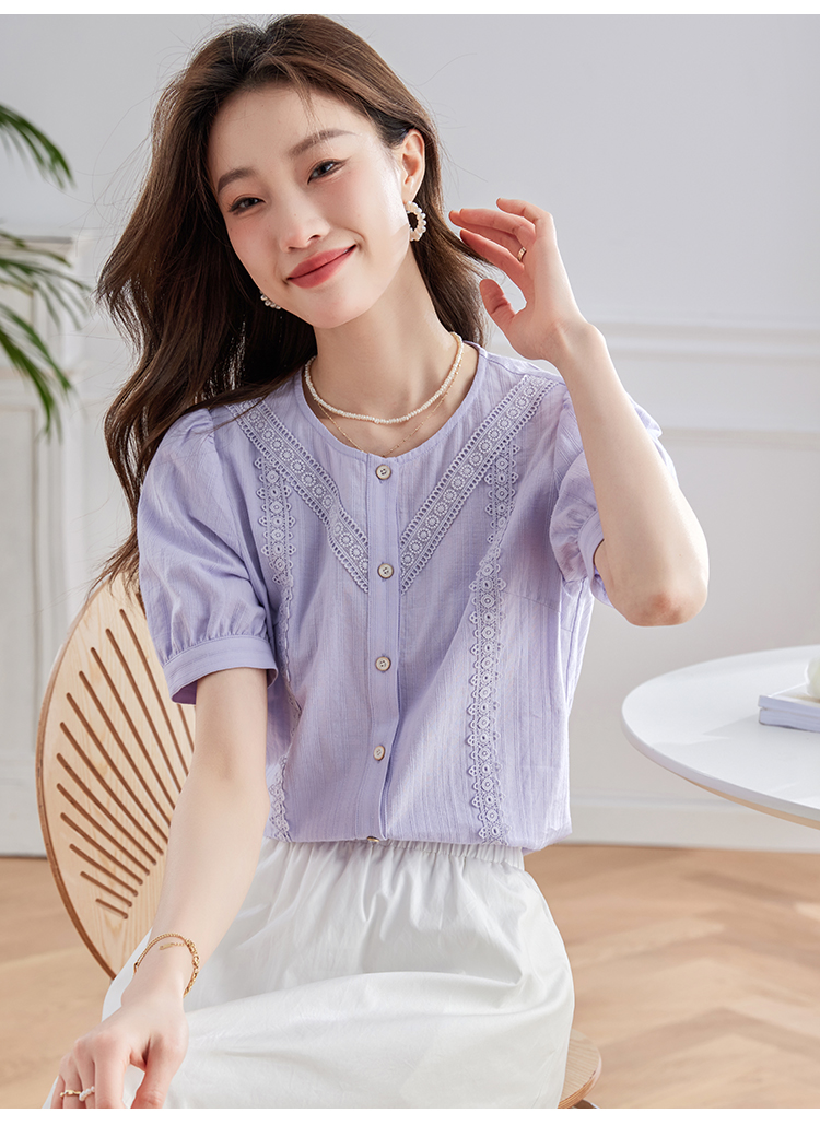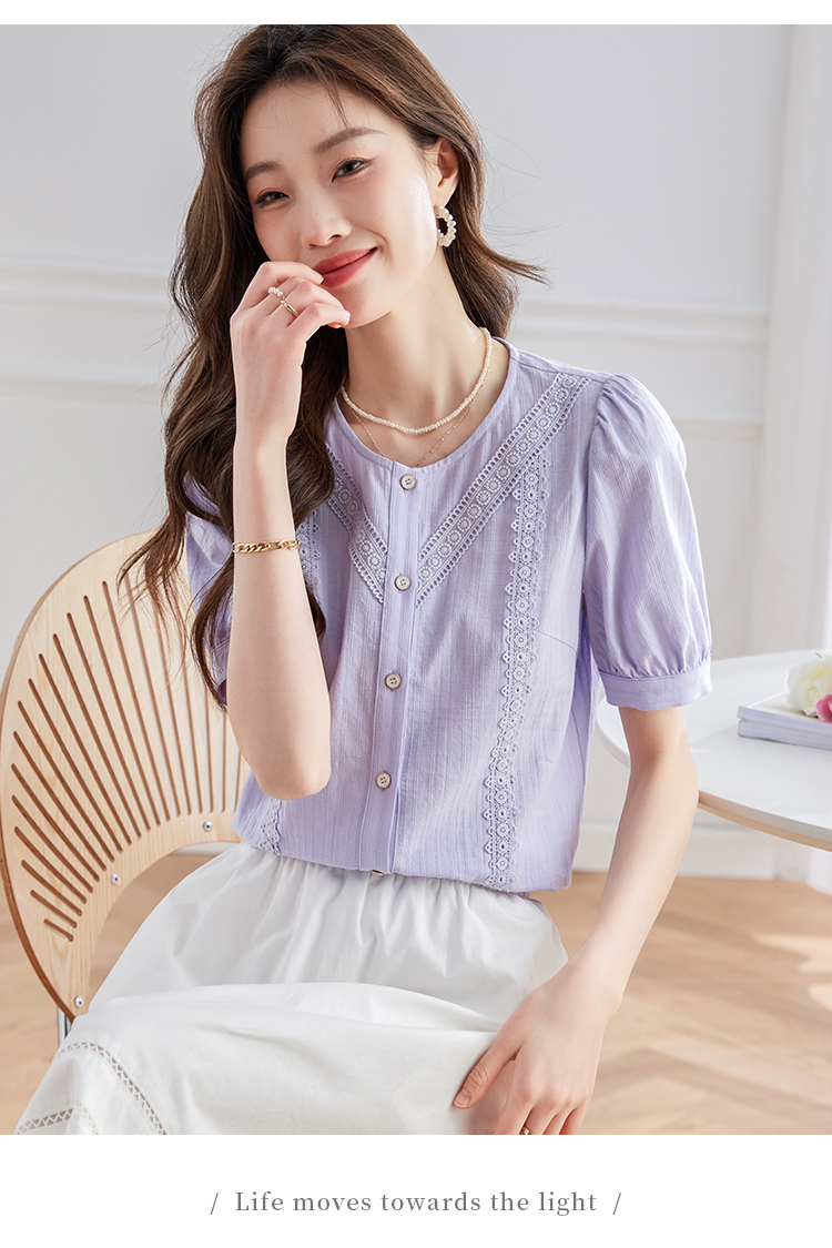 【五折购】熙世界100.%亲肤棉女士衬衫2025夏季新款气质优雅法式泡泡袖上衣
