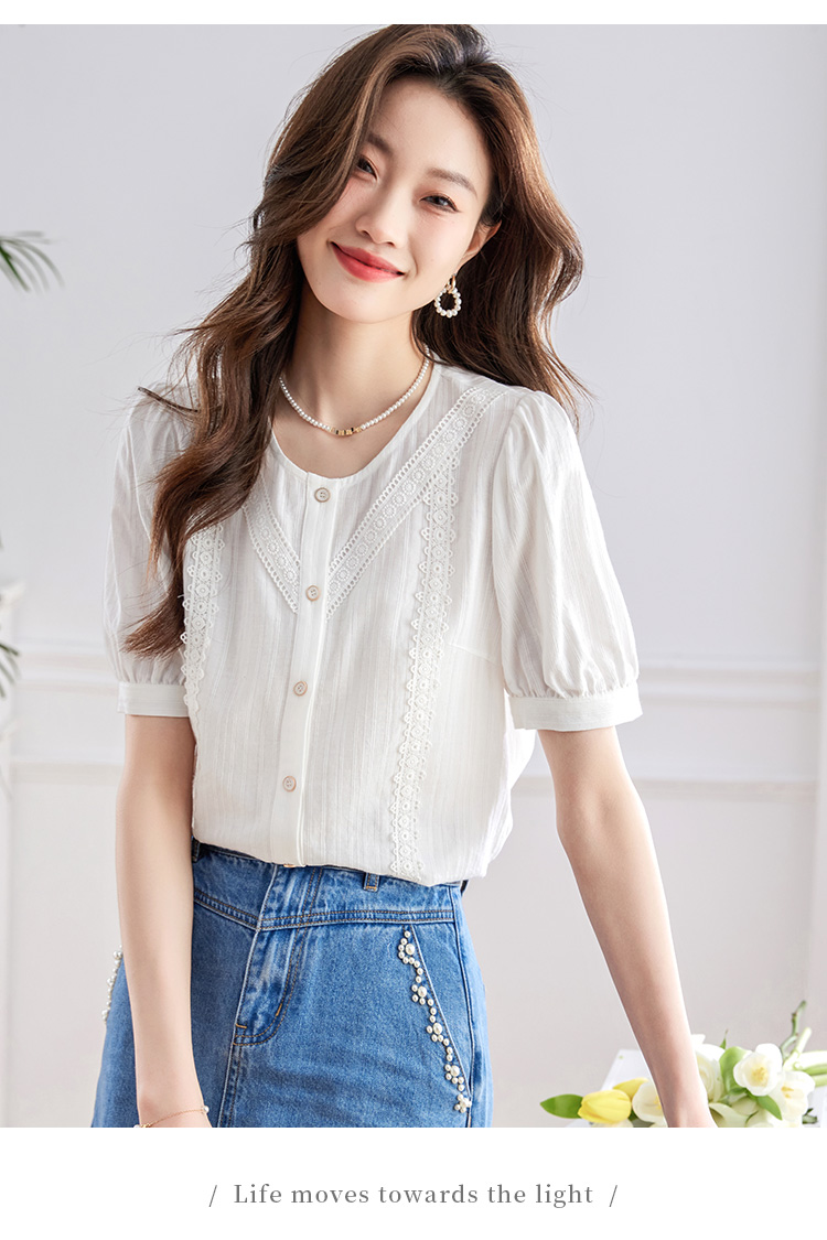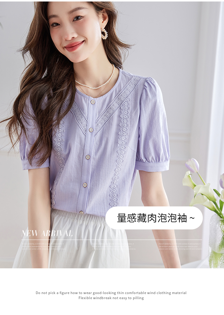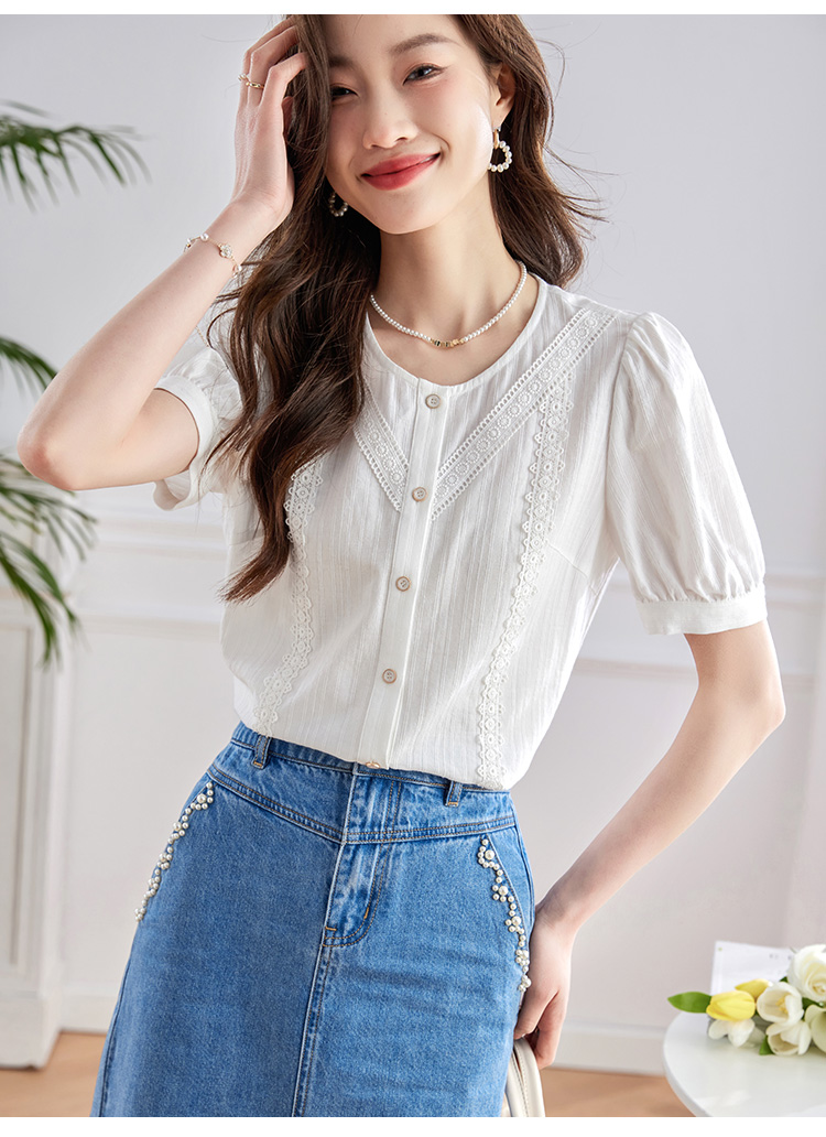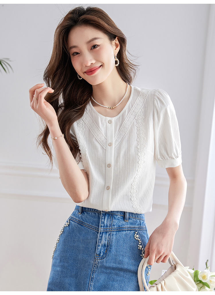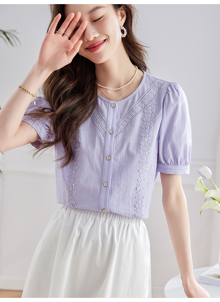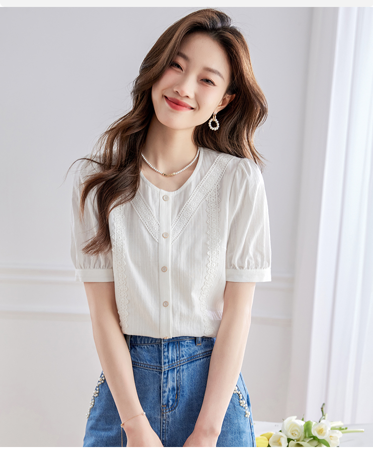 【五折购】熙世界100.%亲肤棉女士衬衫2025夏季新款气质优雅法式泡泡袖上衣