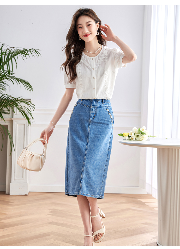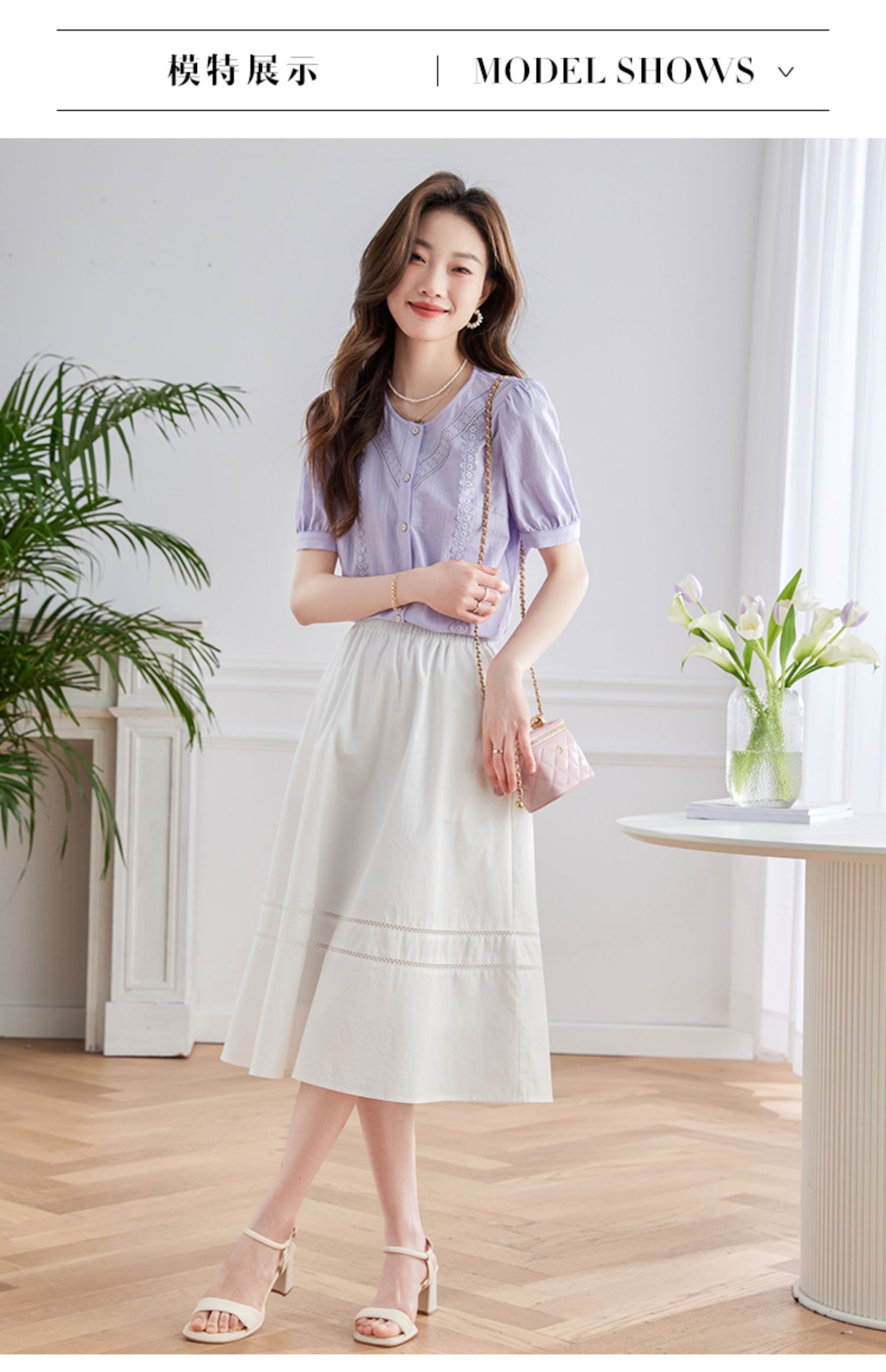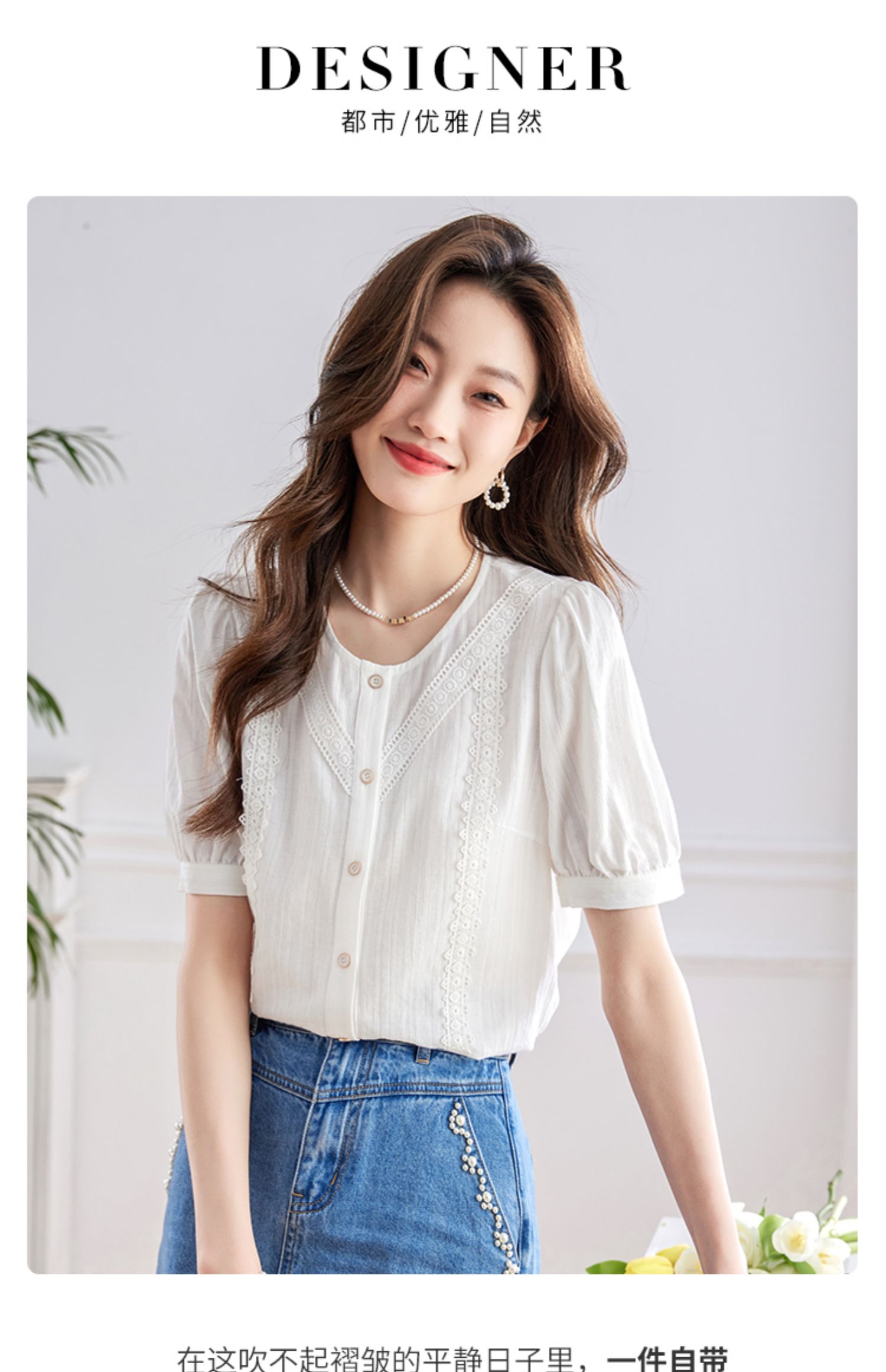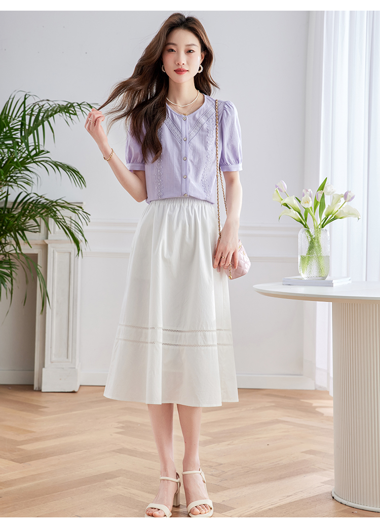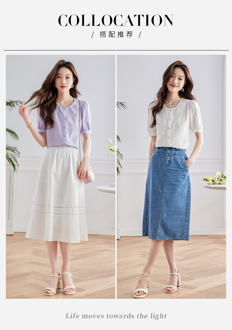 【五折购】熙世界100.%亲肤棉女士衬衫2025夏季新款气质优雅法式泡泡袖上衣