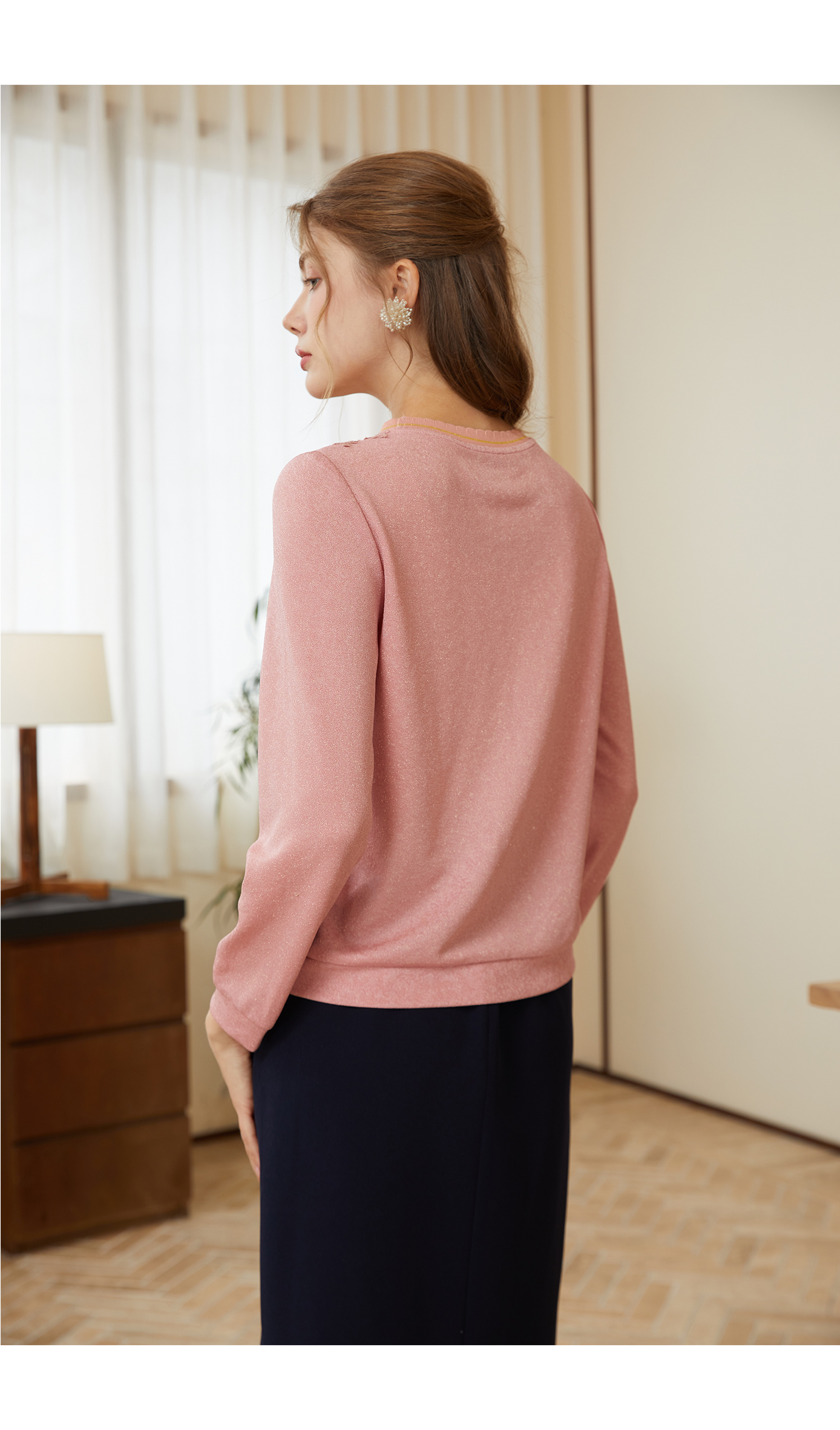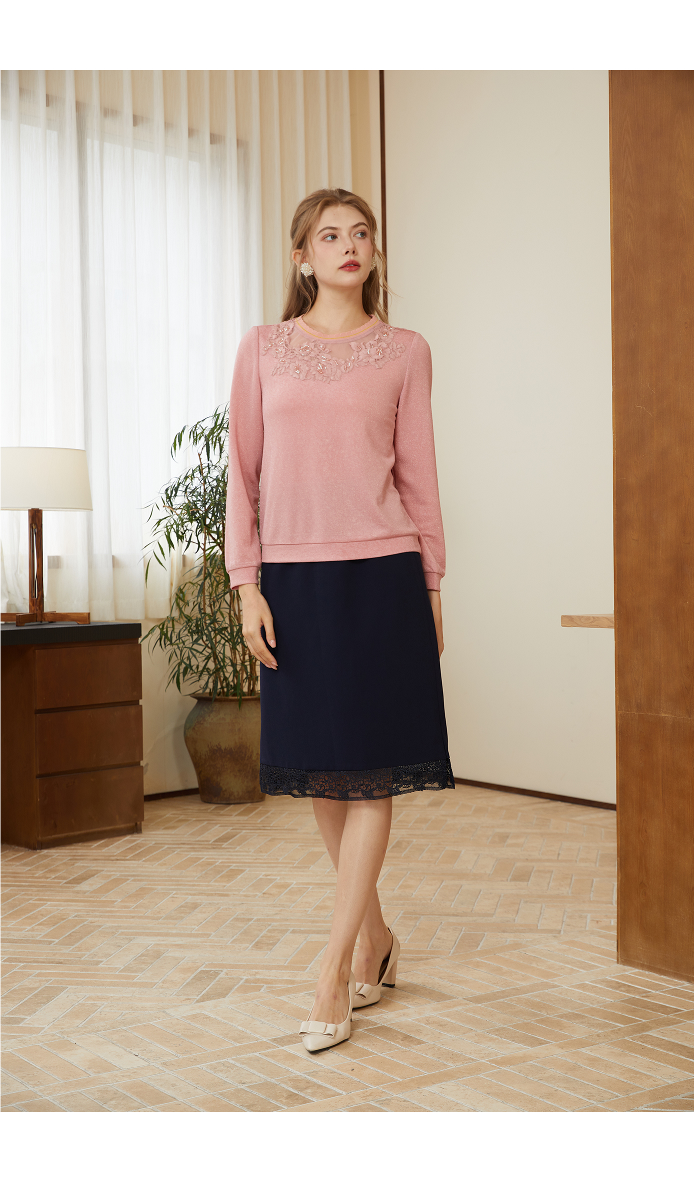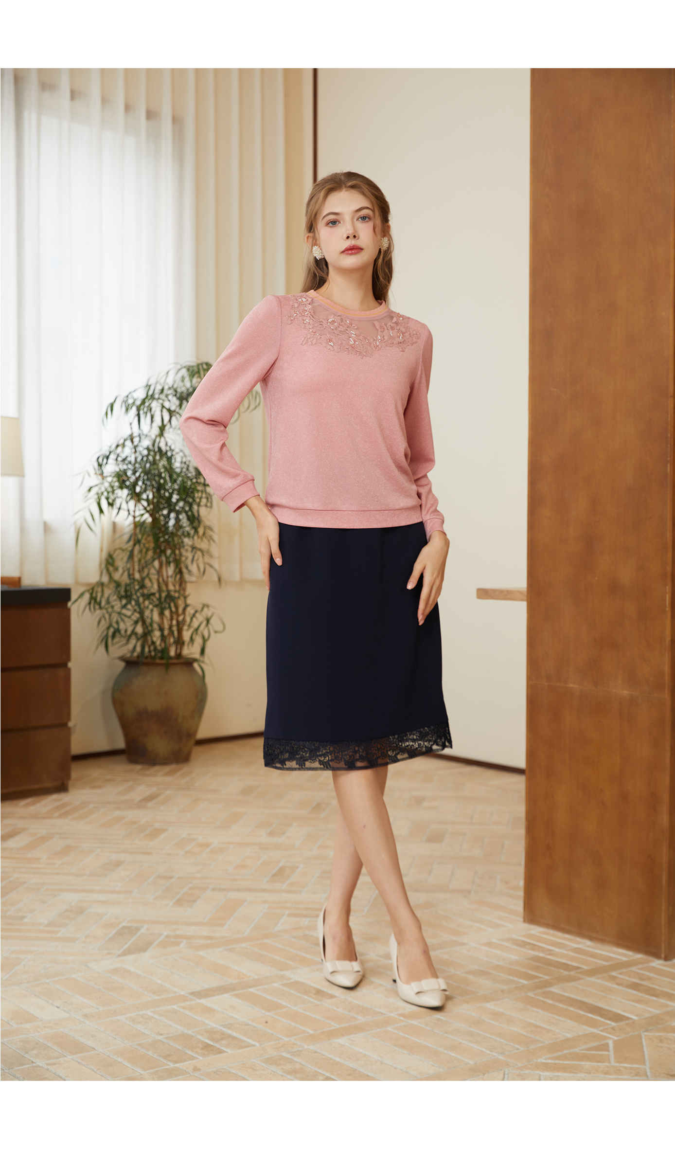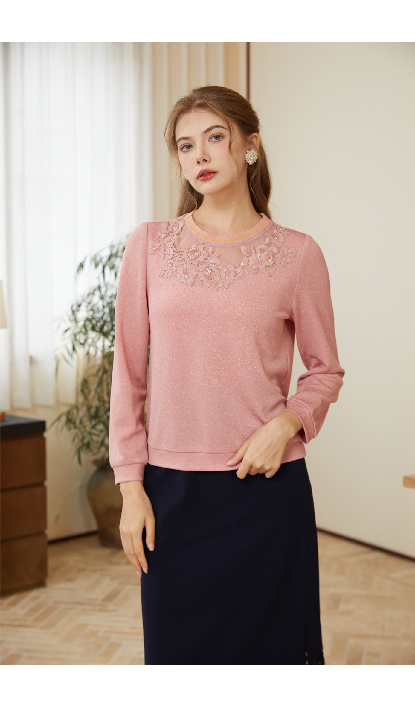 司歌弹力针织上衣拼蕾丝长袖上衣T921265y