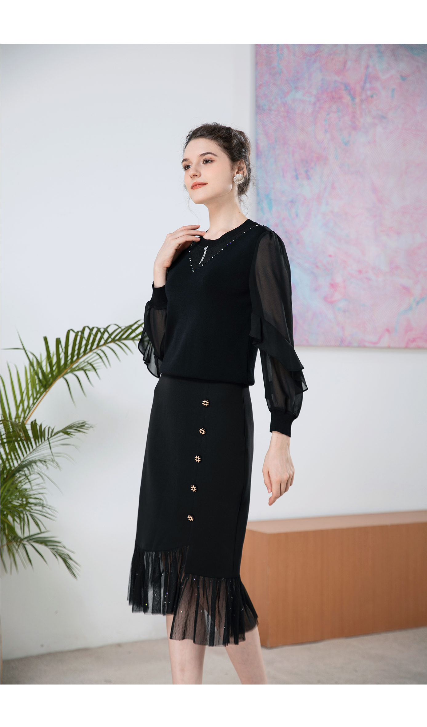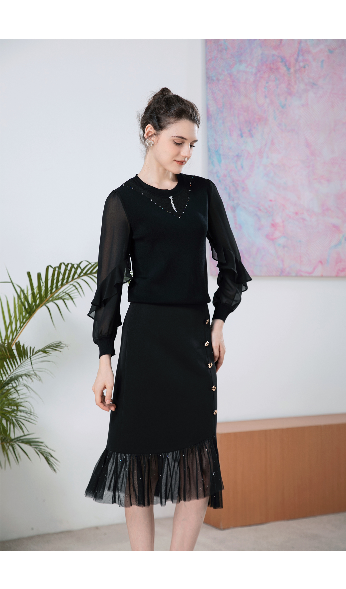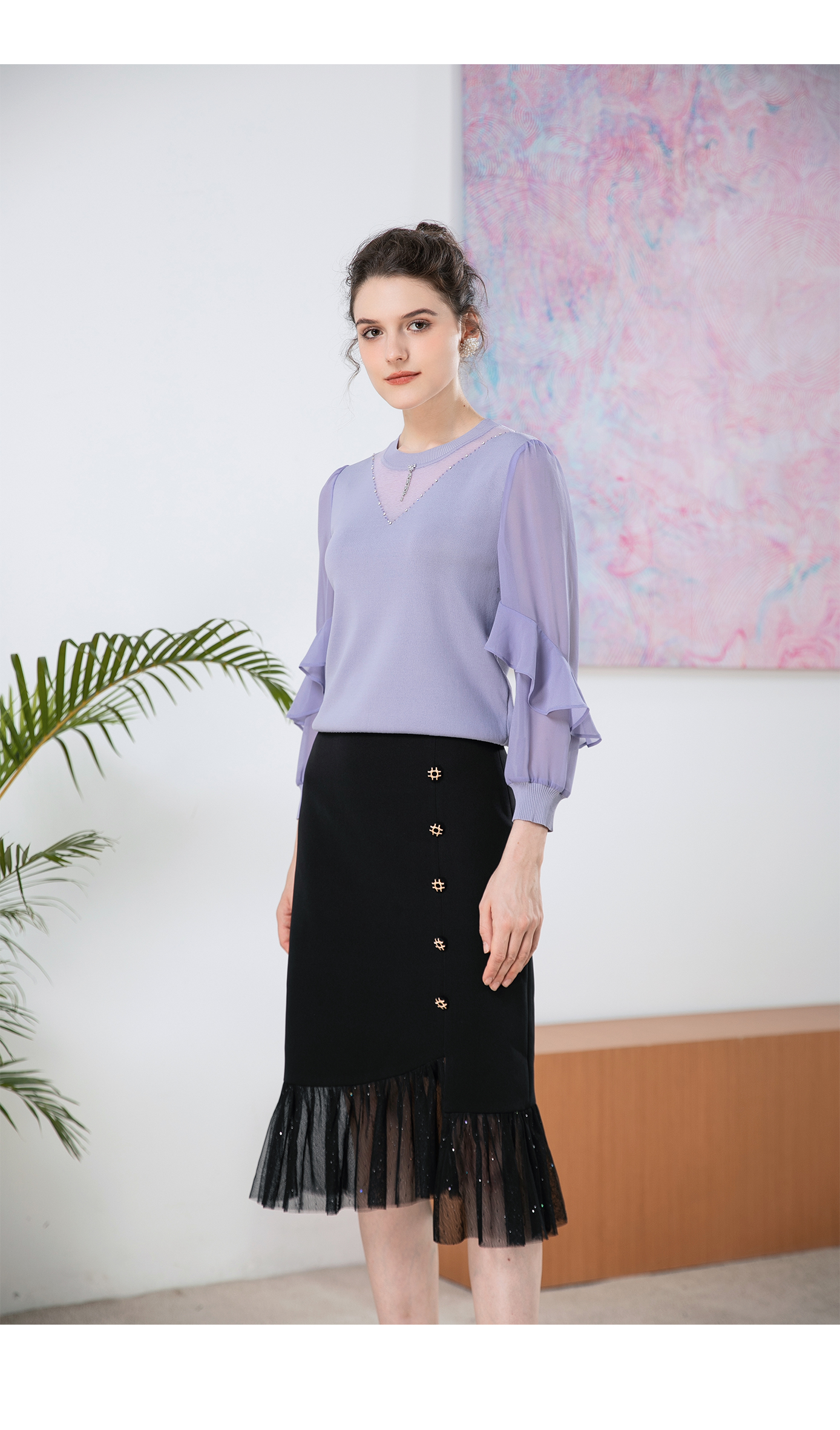 司歌针织荷叶边宽松针织衫T901246X
