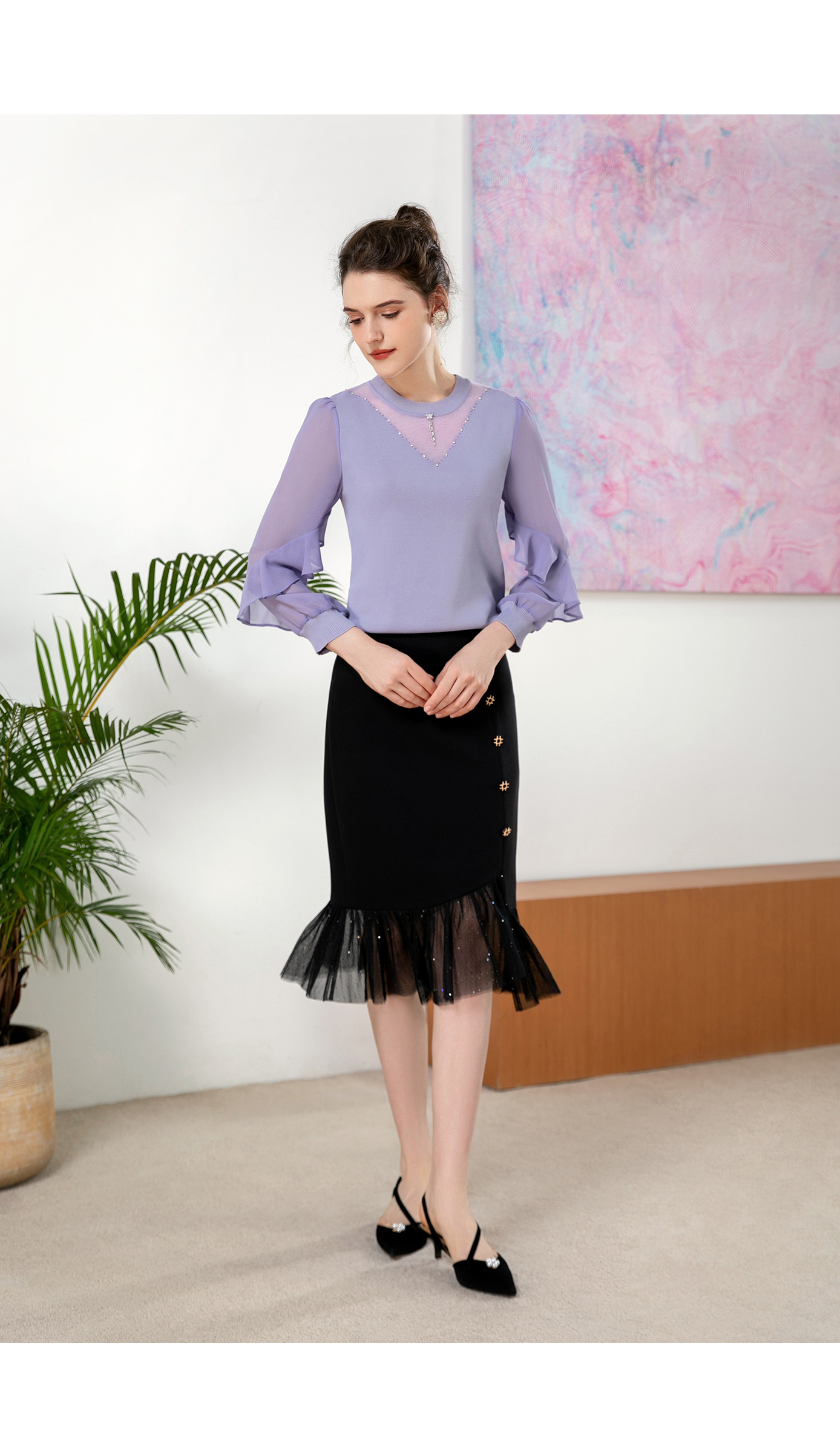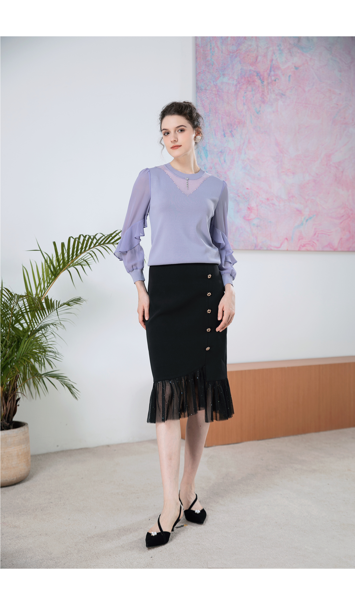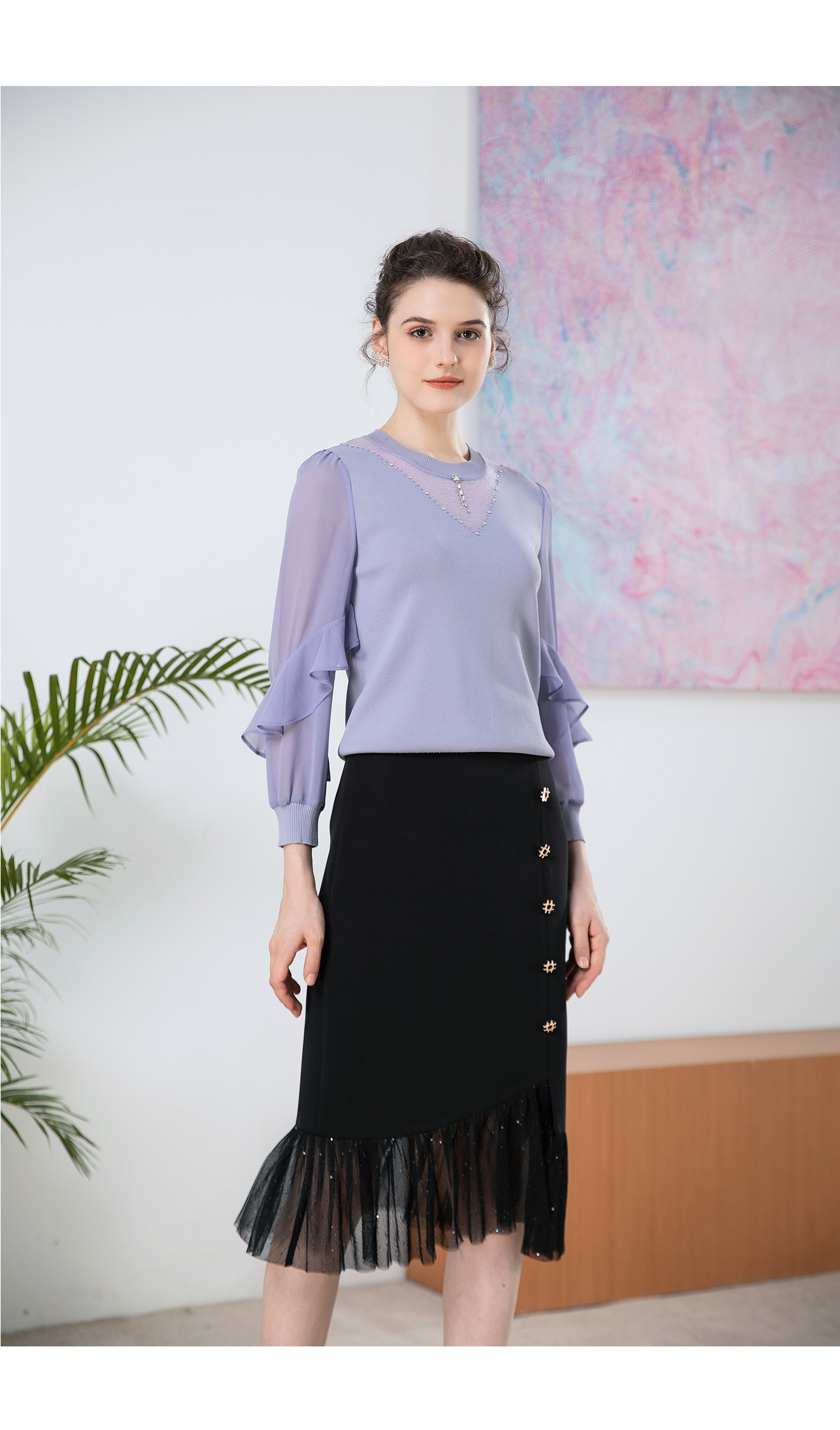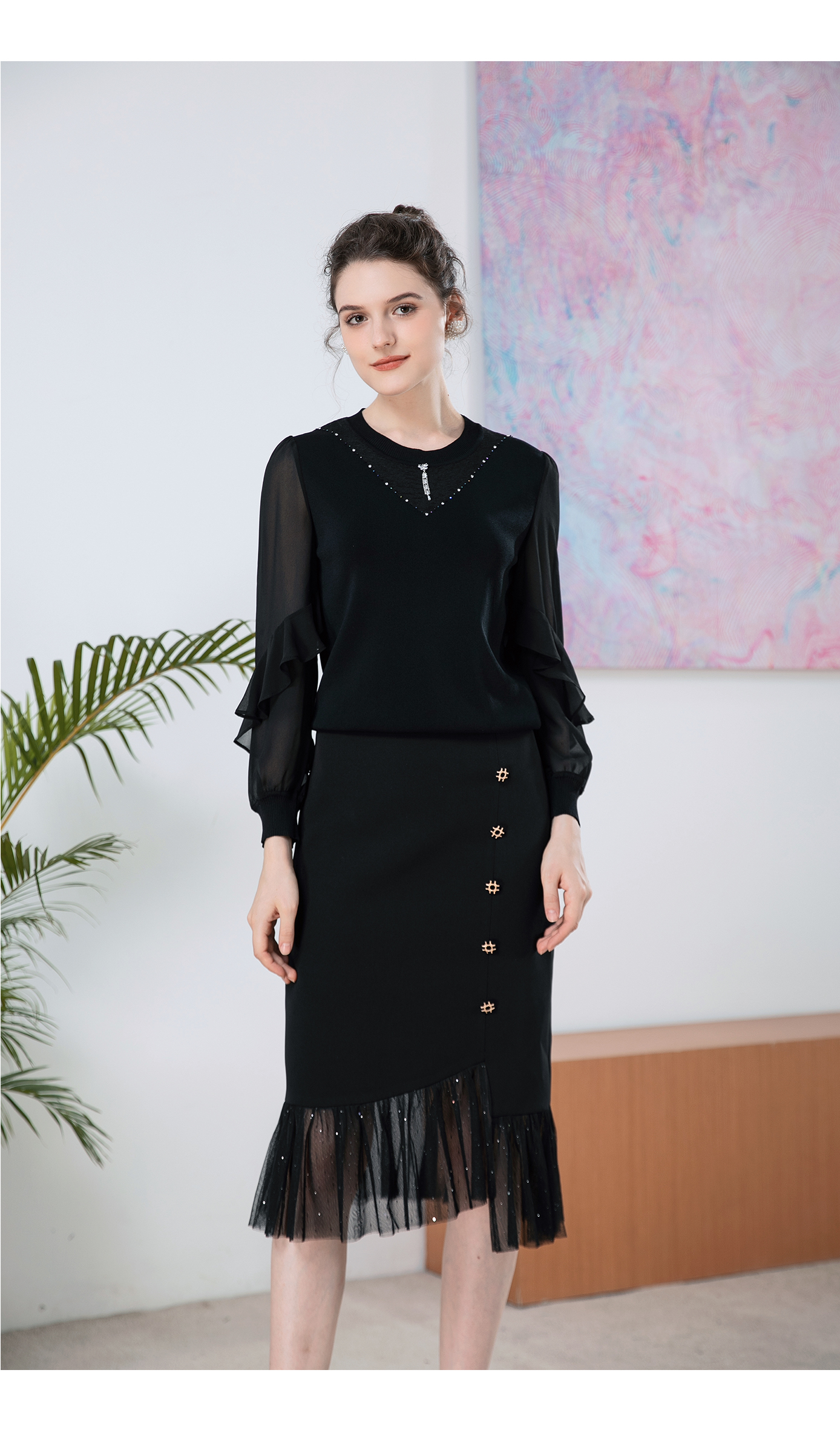 司歌针织荷叶边宽松针织衫T901246X