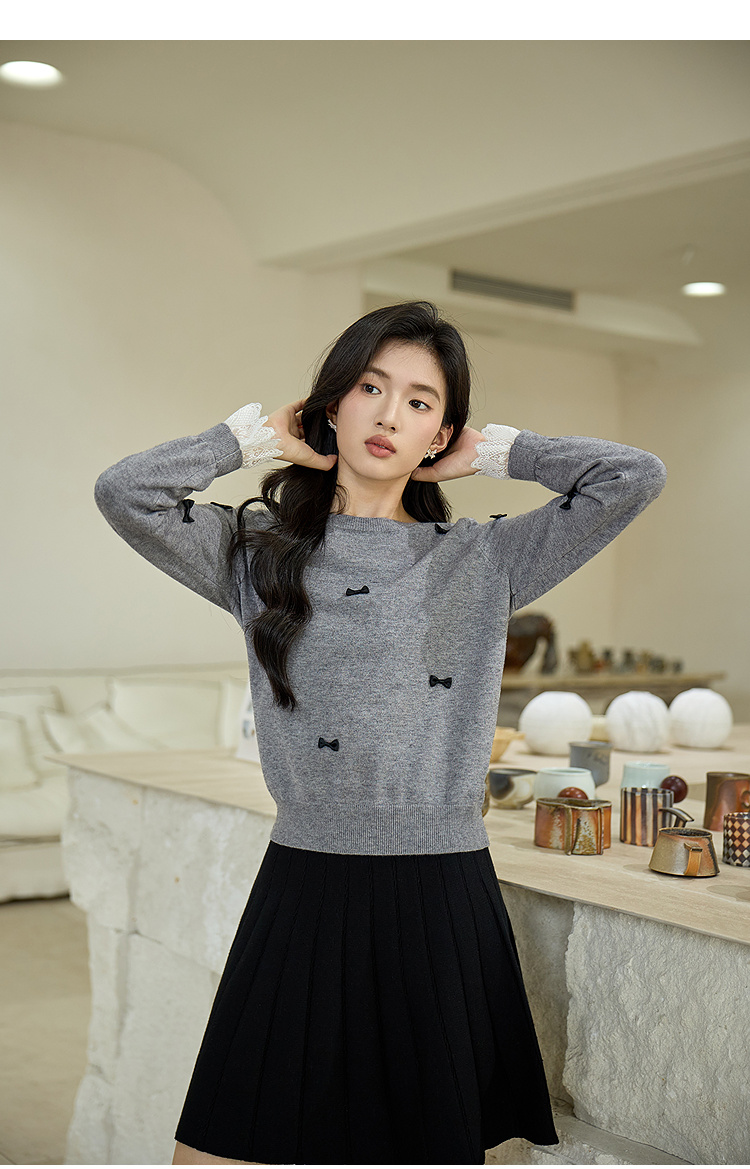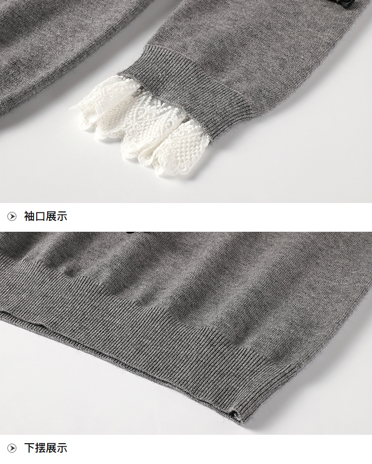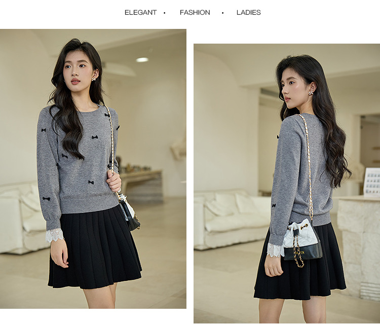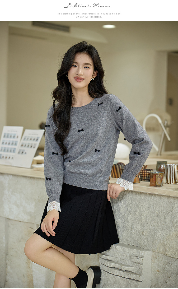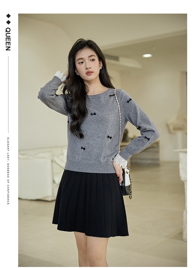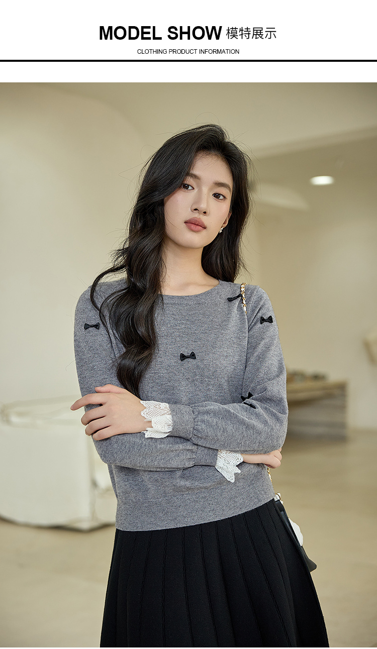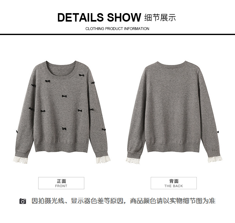 奢姿大码女装2025秋季胖妹妹时尚蝴蝶结装饰气质蕾丝花边针织衫9653253605