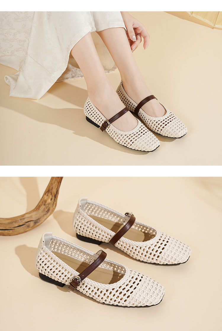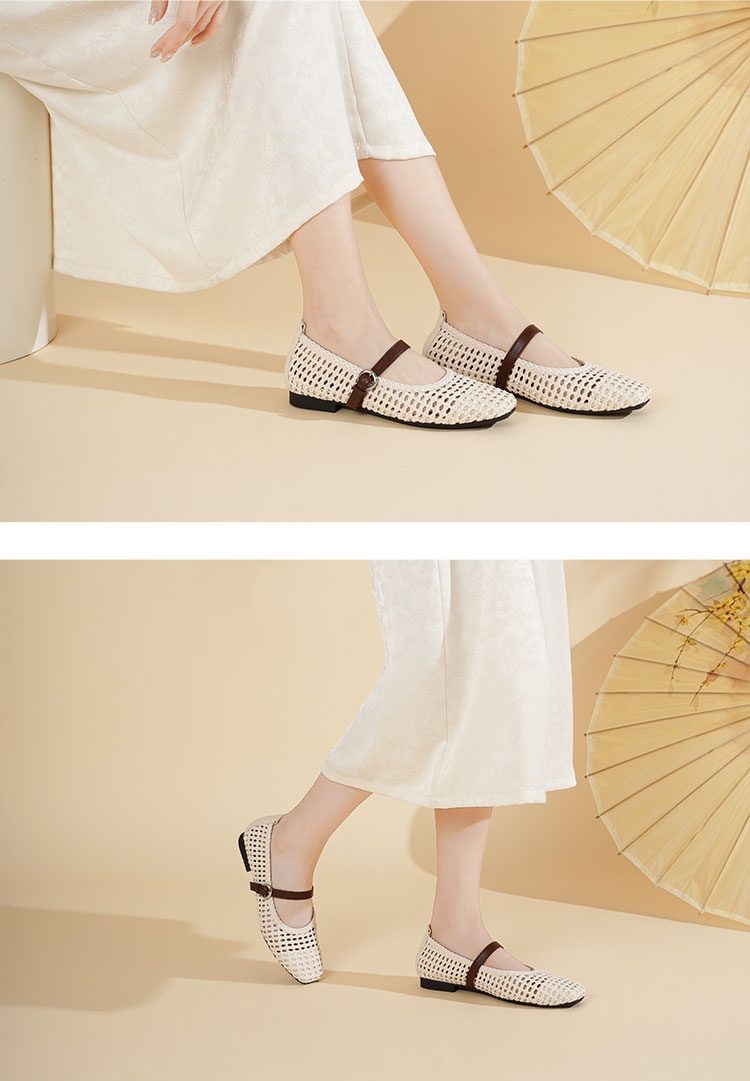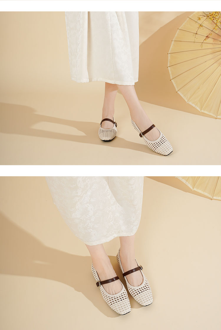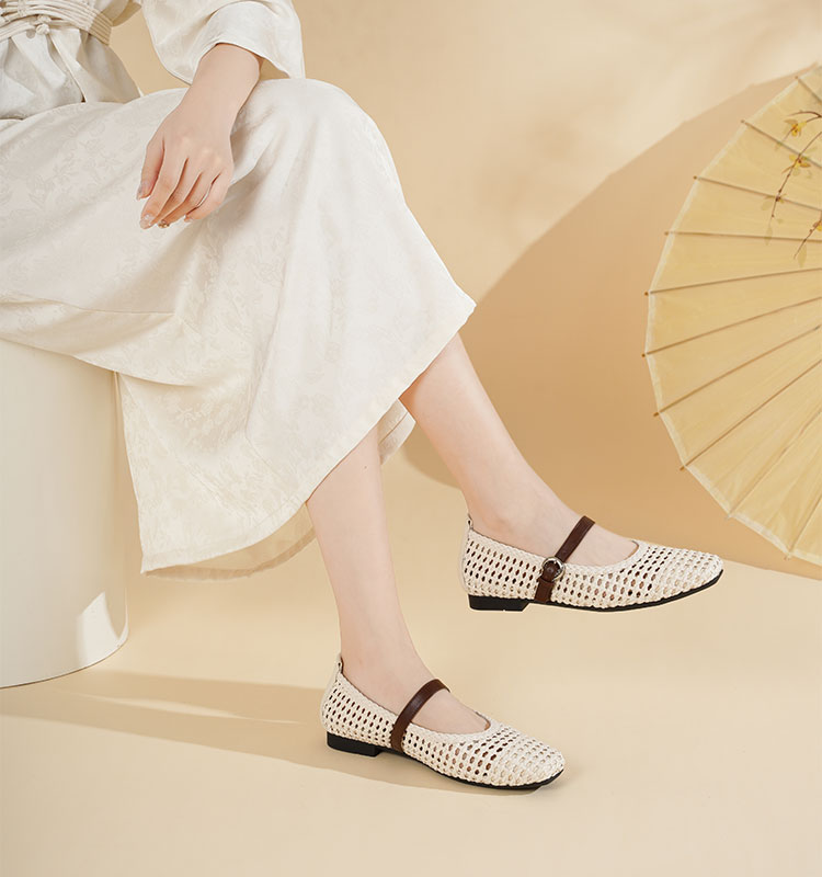【夏季新款】西村名物2025年夏季新款舒适平底包脚镂空新中式玛丽珍单鞋T25AH16601