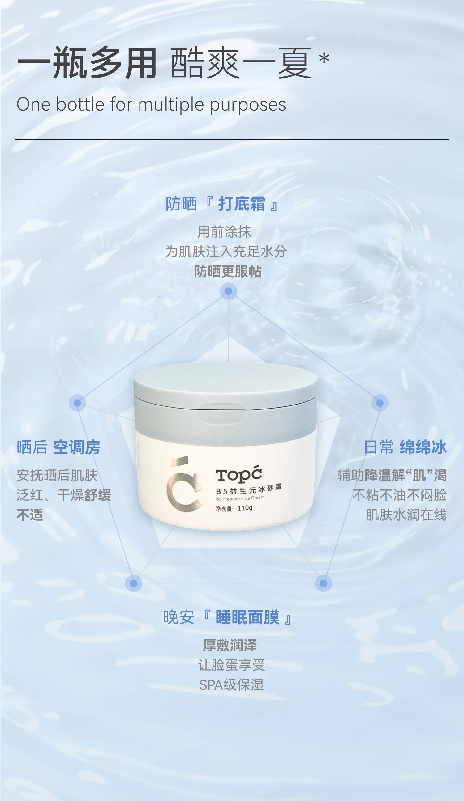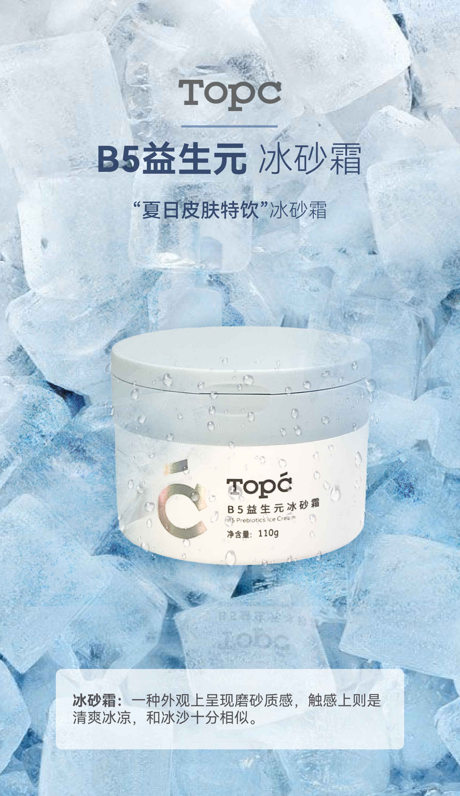 【TOPCB5益生元冰砂霜】夏季限定!上脸自带冰凉清爽感,一抹降温,号称“肌肤的灭火器”!能舒缓红肿,干燥,不稳定的肌肤状态,补水保湿,修复,深层滋养!110g/罐!【保质期至27年5月底】