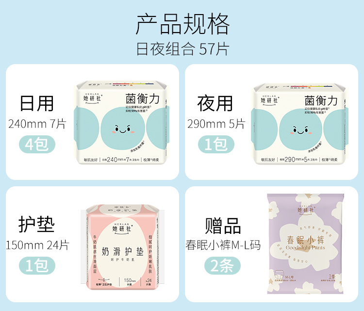 她研社菌衡力日夜组合6包57片 送2条小裤 弱酸抑菌 干爽透气 敏肌适用
