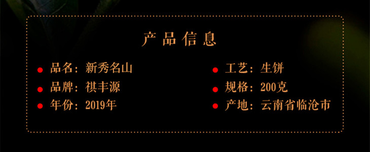 2019年普洱茶 祺丰源名茶典册——新秀名山优选集 200g/饼*6饼