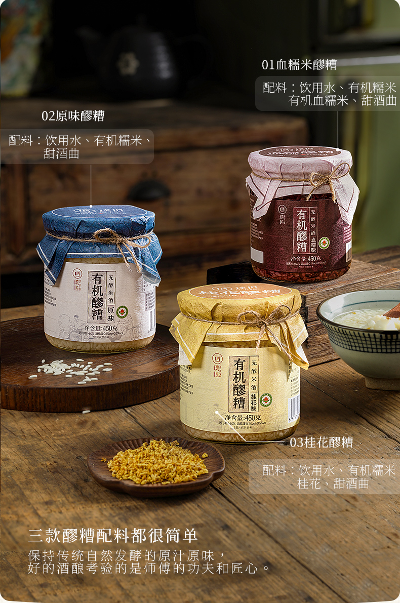 璞匠有机血糯醪糟无醇米酒旗舰店黄山糯米酒酿月子甜酒小汤圆甜品