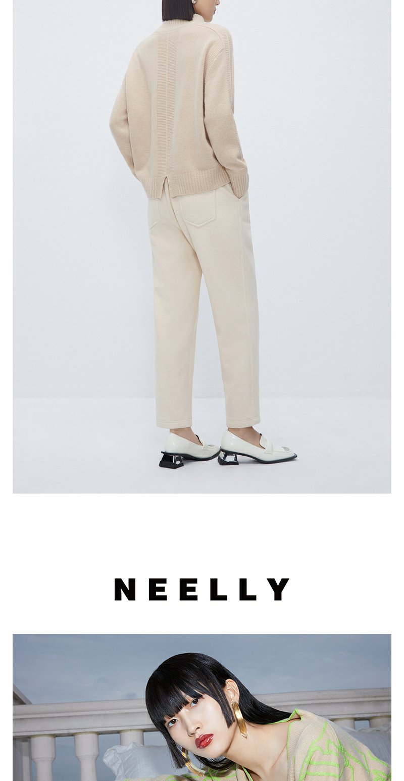 NEELLY纳俪商场同款时尚简约休闲裤女松紧腰通勤百搭西装裤萝卜裤N23113H01205