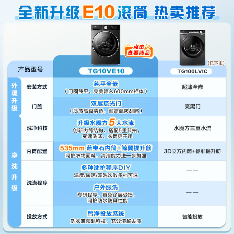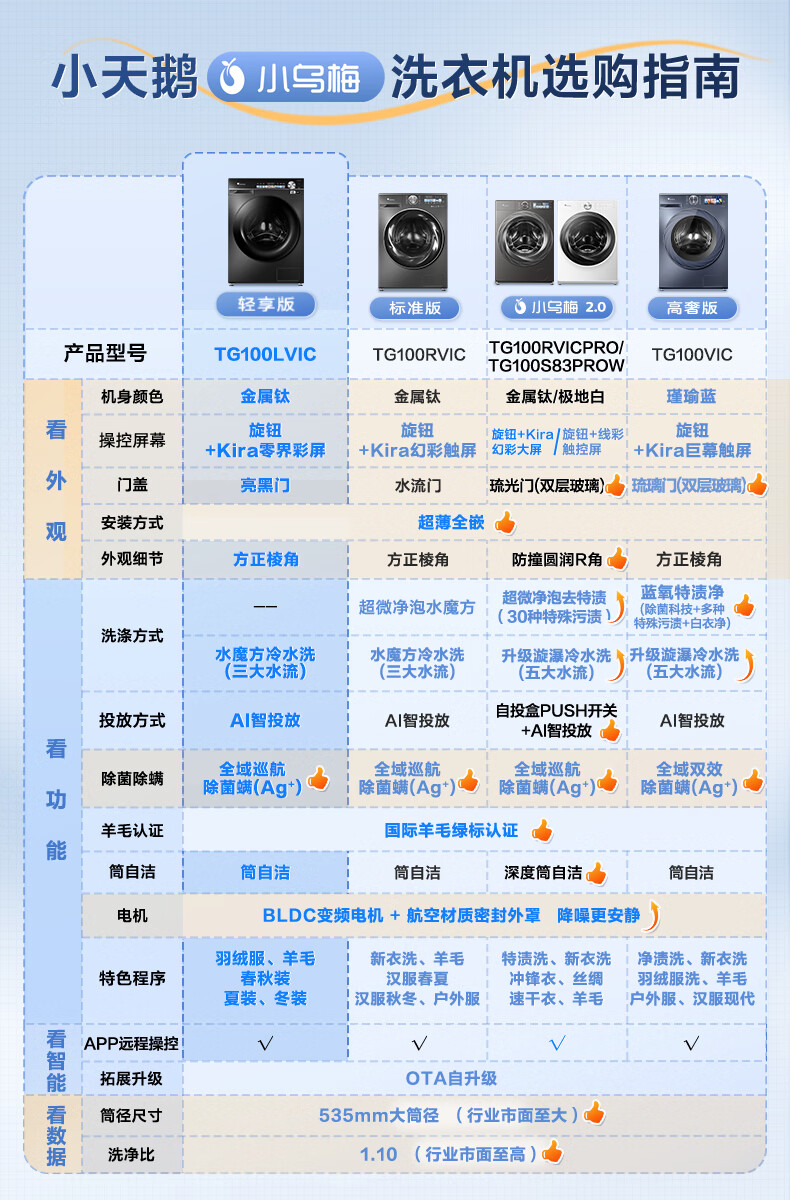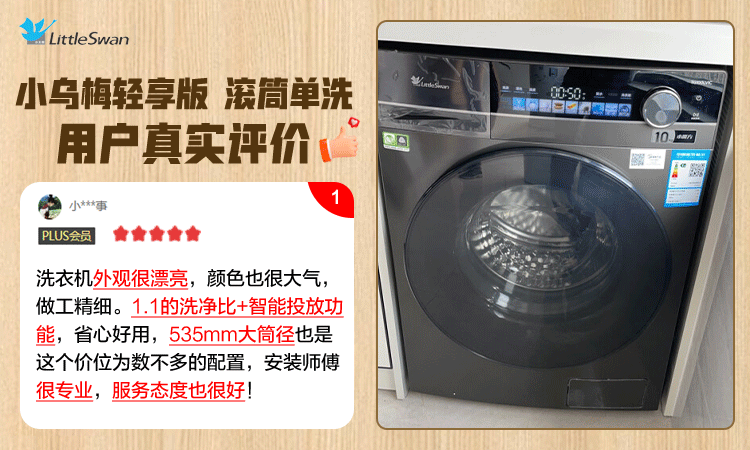 小天鹅(LittleSwan)滚筒洗衣机全自动家用_超薄全嵌【小乌梅轻享版_TG100LVIC】10公斤_推荐购买升级款E10