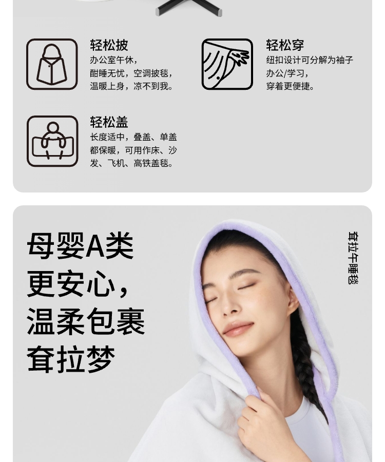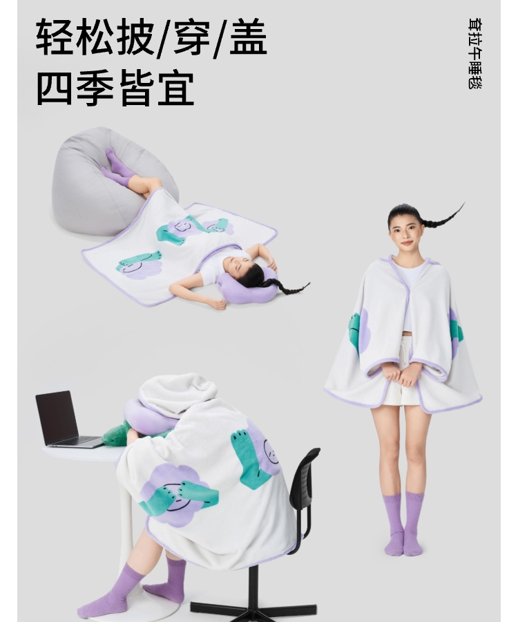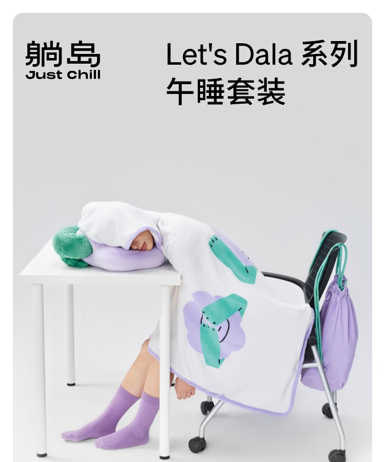 躺岛耷拉系列午睡套装办公午睡家用宿舍懒人盖毯