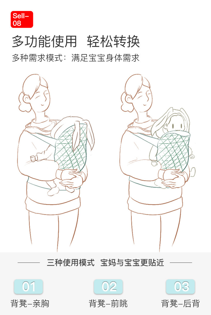 (K-4)婴儿背带多功能0-3岁四季通用初生新生儿前抱式背巾宝宝抱娃