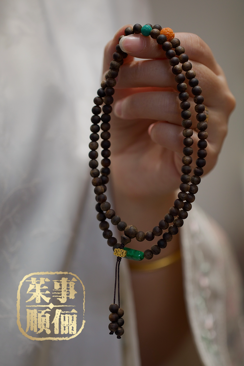 【茱事顺俪】18k金沉香绿松翡翠手链