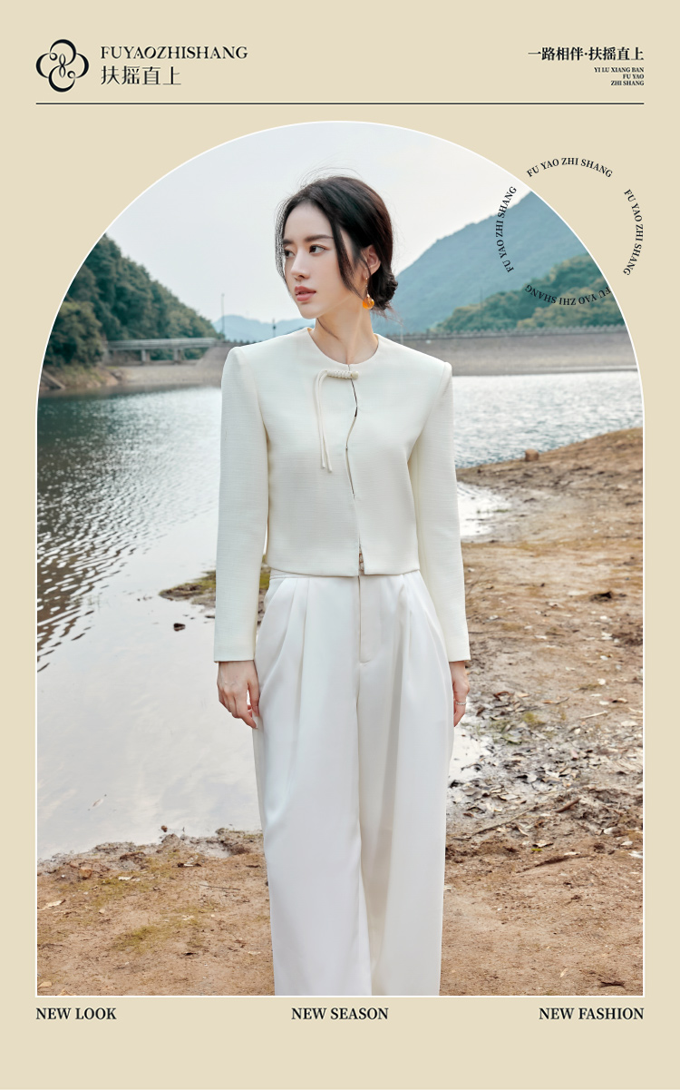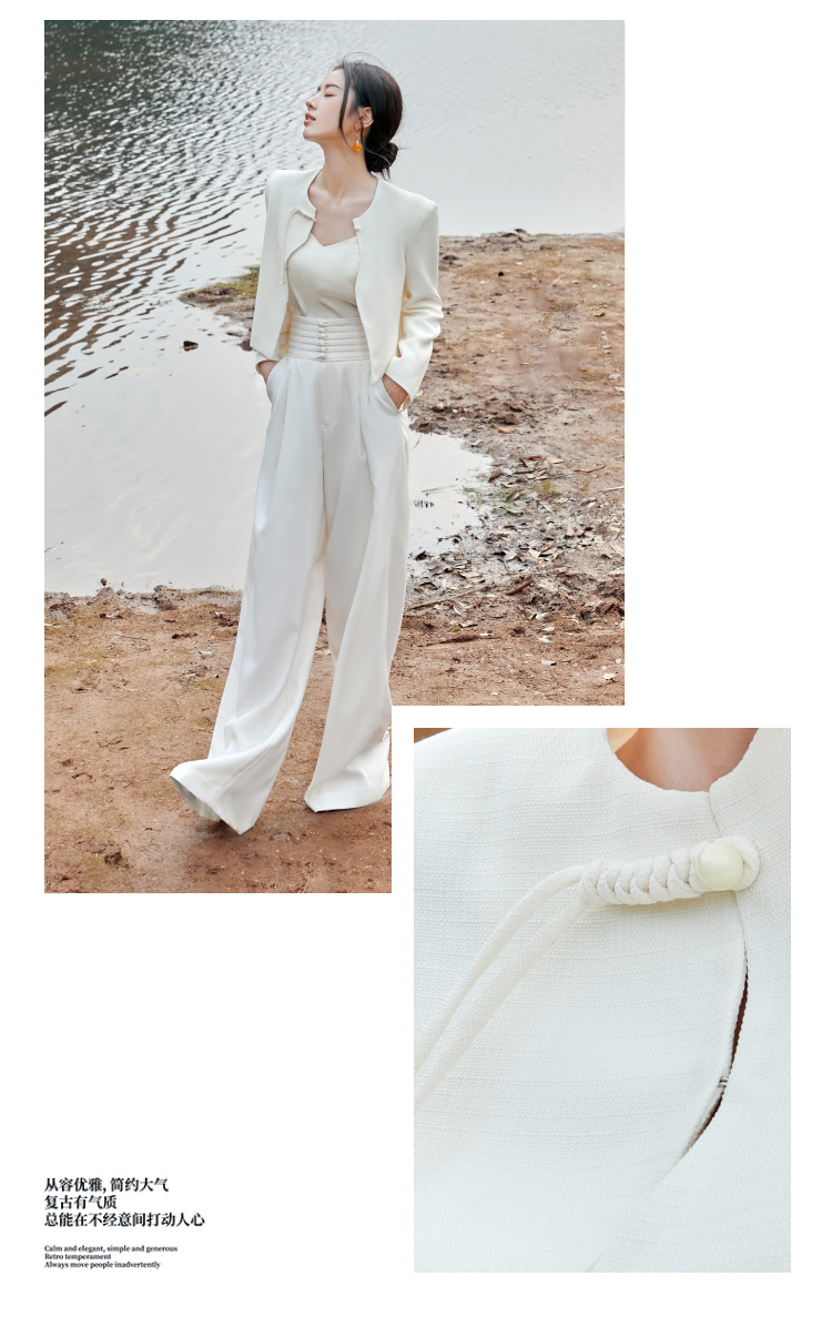 IWY/扶摇系列 秋季设计感国风盘扣短外套高腰宽松阔腿裤