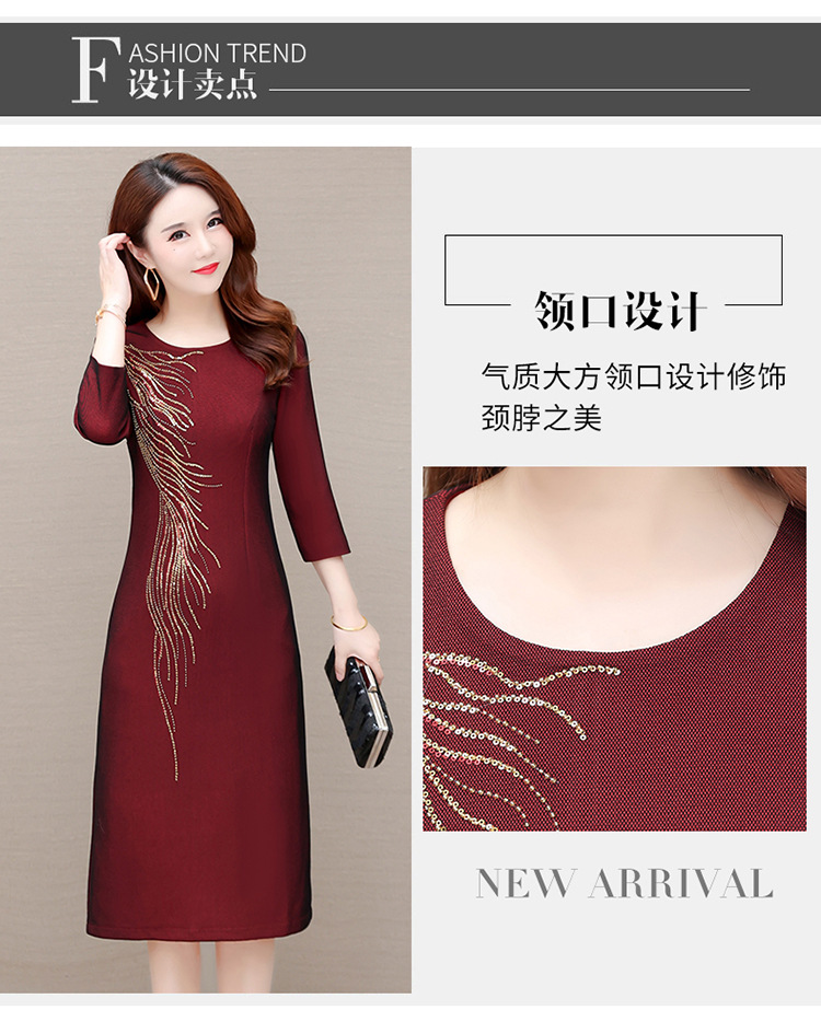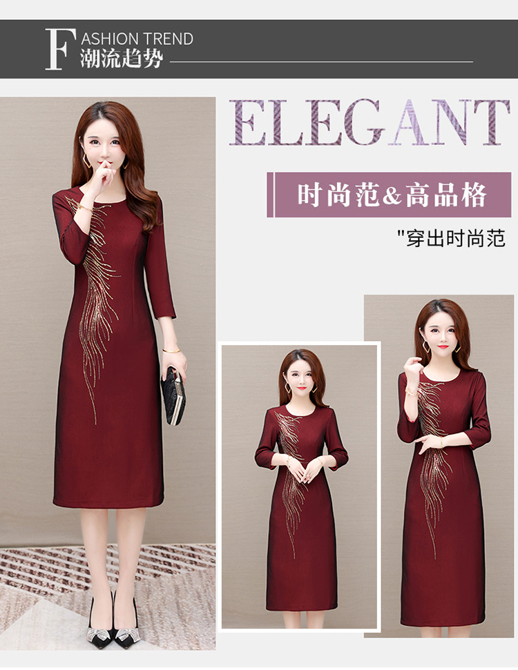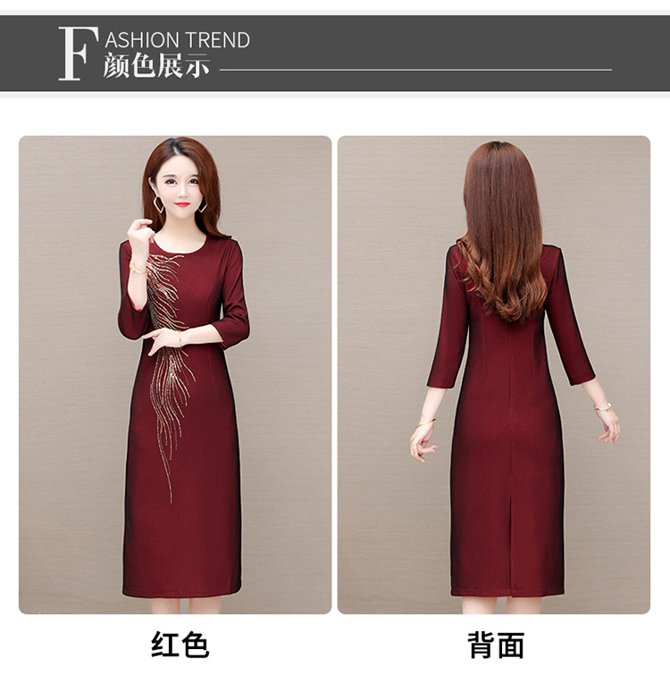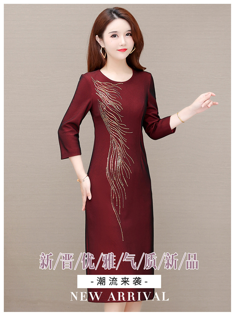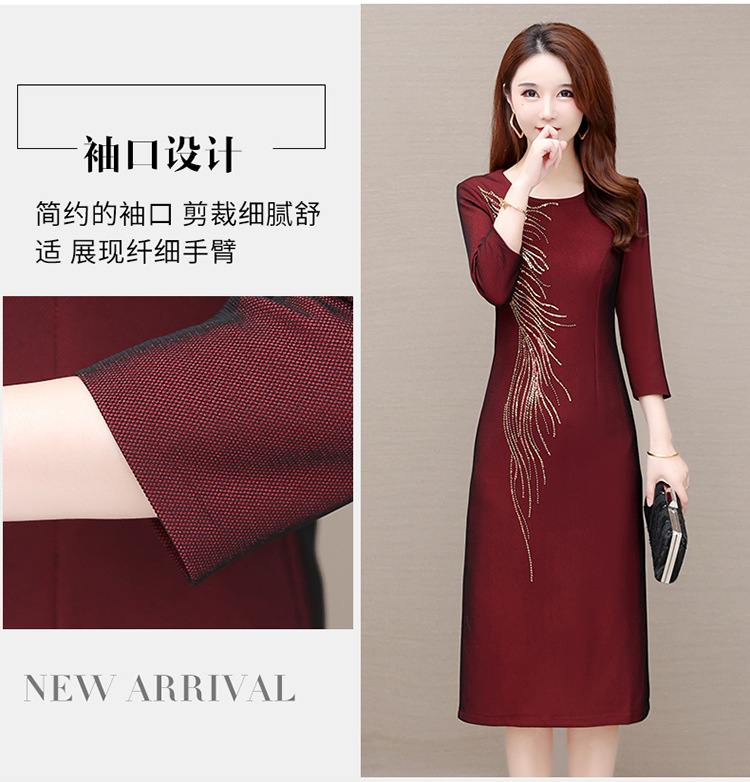 时尚优雅亮片包臀一步裙,七分袖修身气质连衣裙QYM-OMS-RB103-L