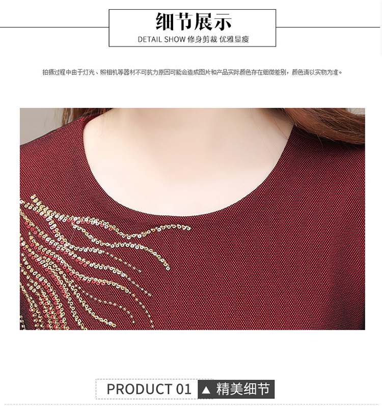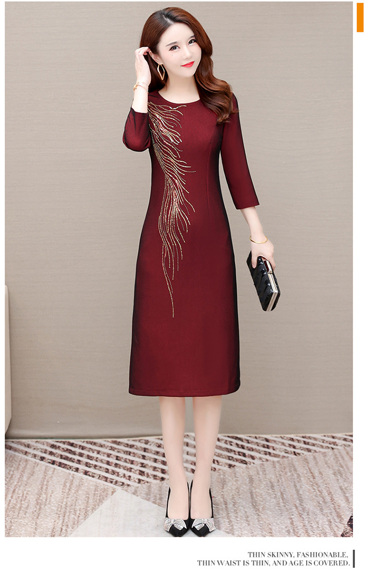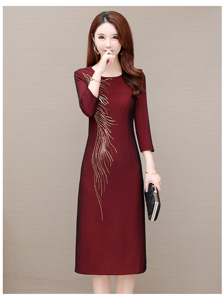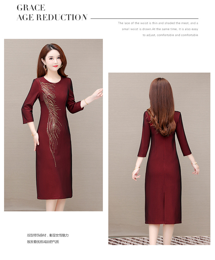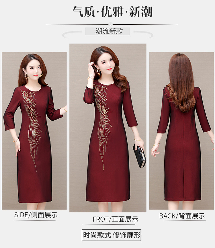 时尚优雅亮片包臀一步裙,七分袖修身气质连衣裙QYM-OMS-RB103-L