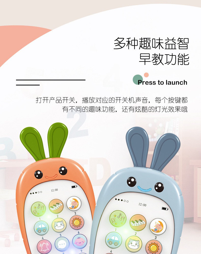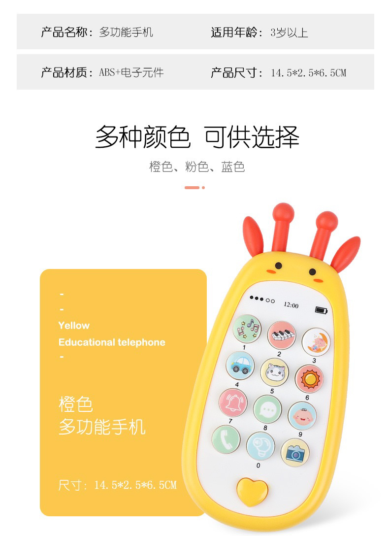 【博乐里】188-5 婴儿卡通仿真手机 可啃咬 音乐早教故事机 双语学习玩具