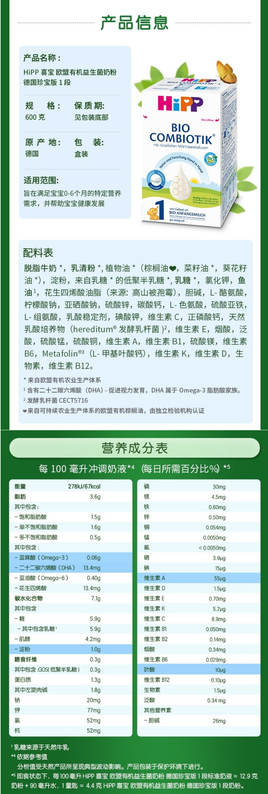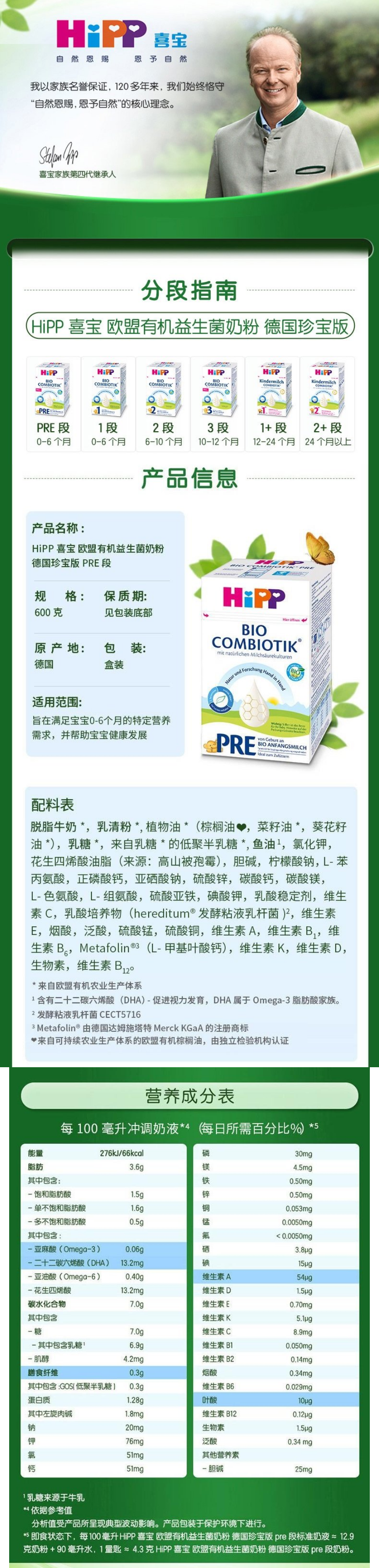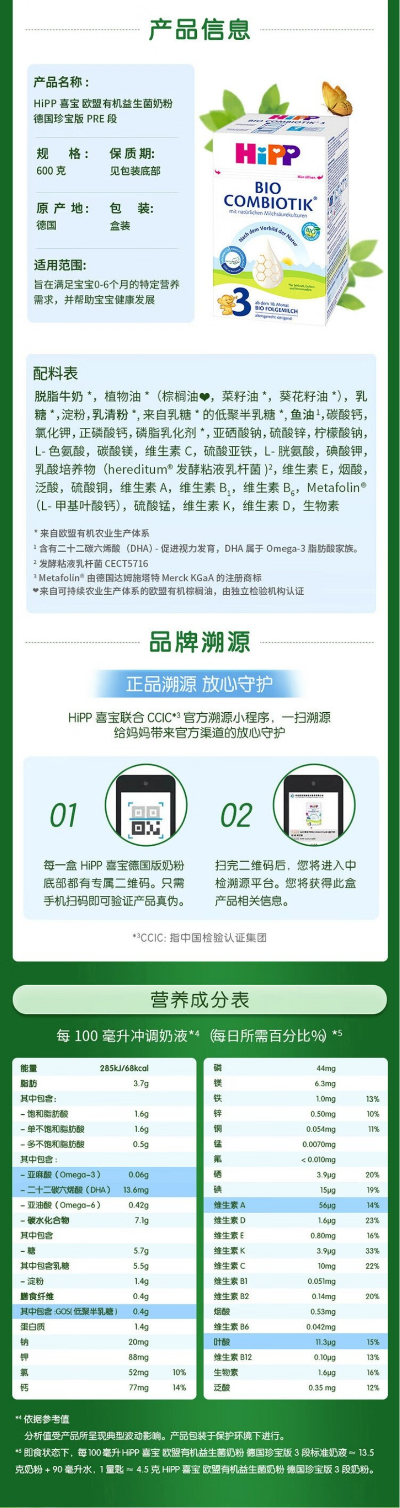 【保税】德国 喜宝(HiPP)益生菌奶粉 Pre段1段2段3段1+段2+段