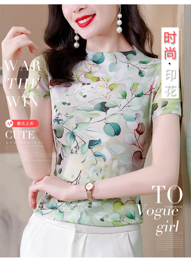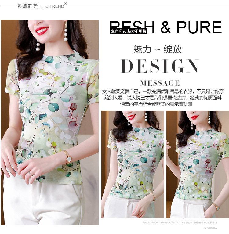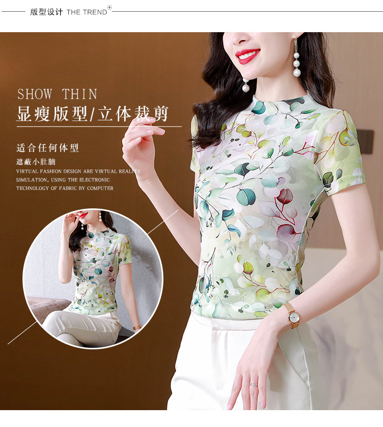 大码网纱双层打底衫,百搭t恤上衣KQL-520N98782