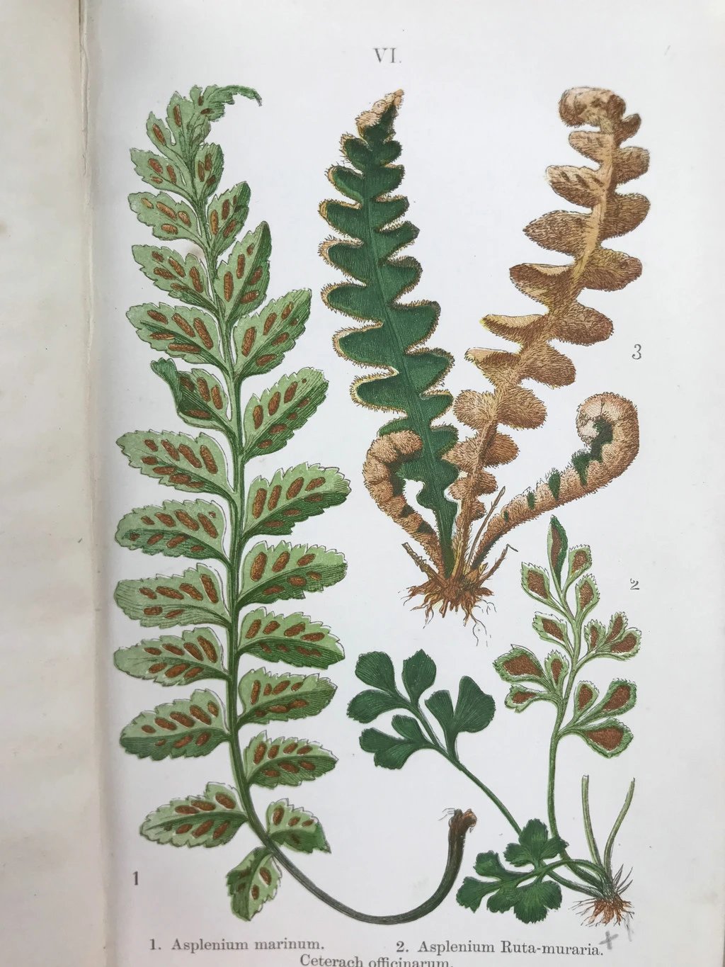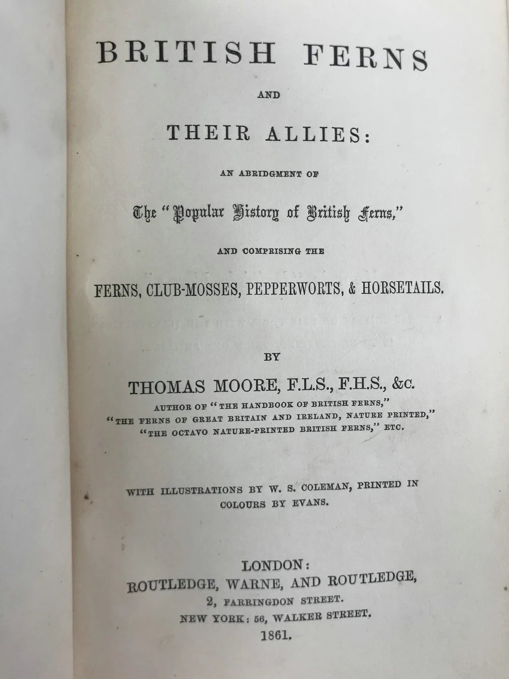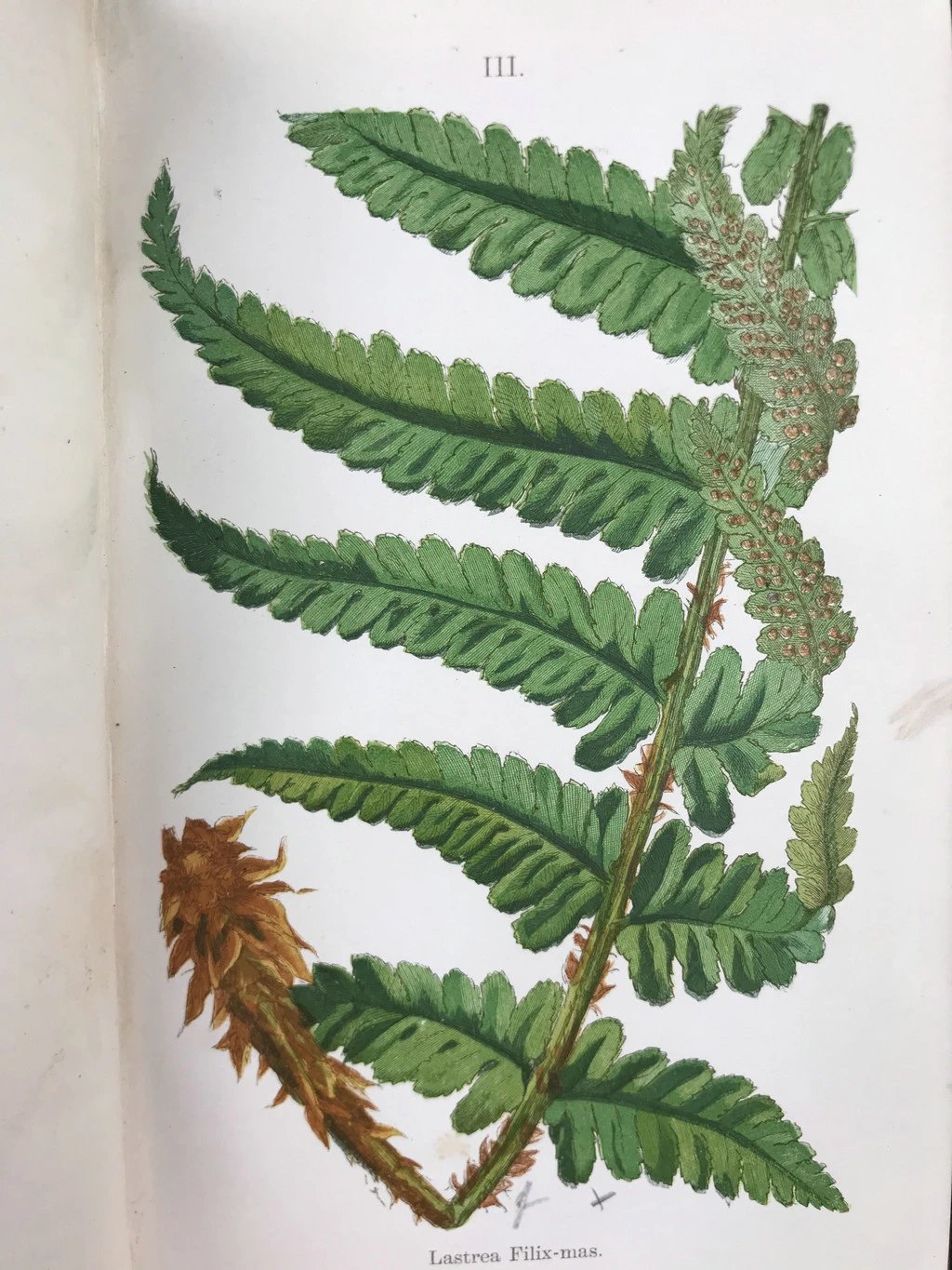 1861年 英国蕨类及其近缘植物 12幅套色版画插图 漆布精装36开