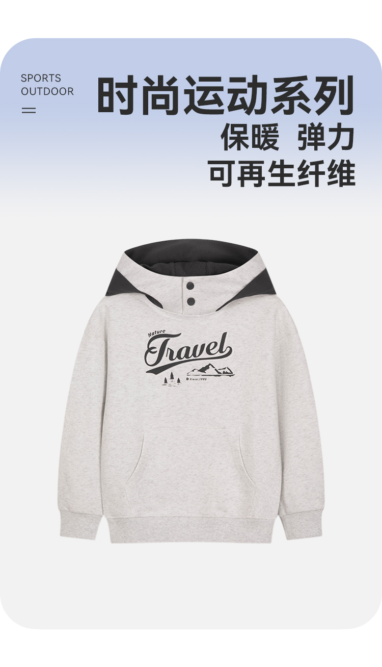 水孩儿童装2024秋装新款男童卫衣中大童上衣连帽柔软舒适休闲运动