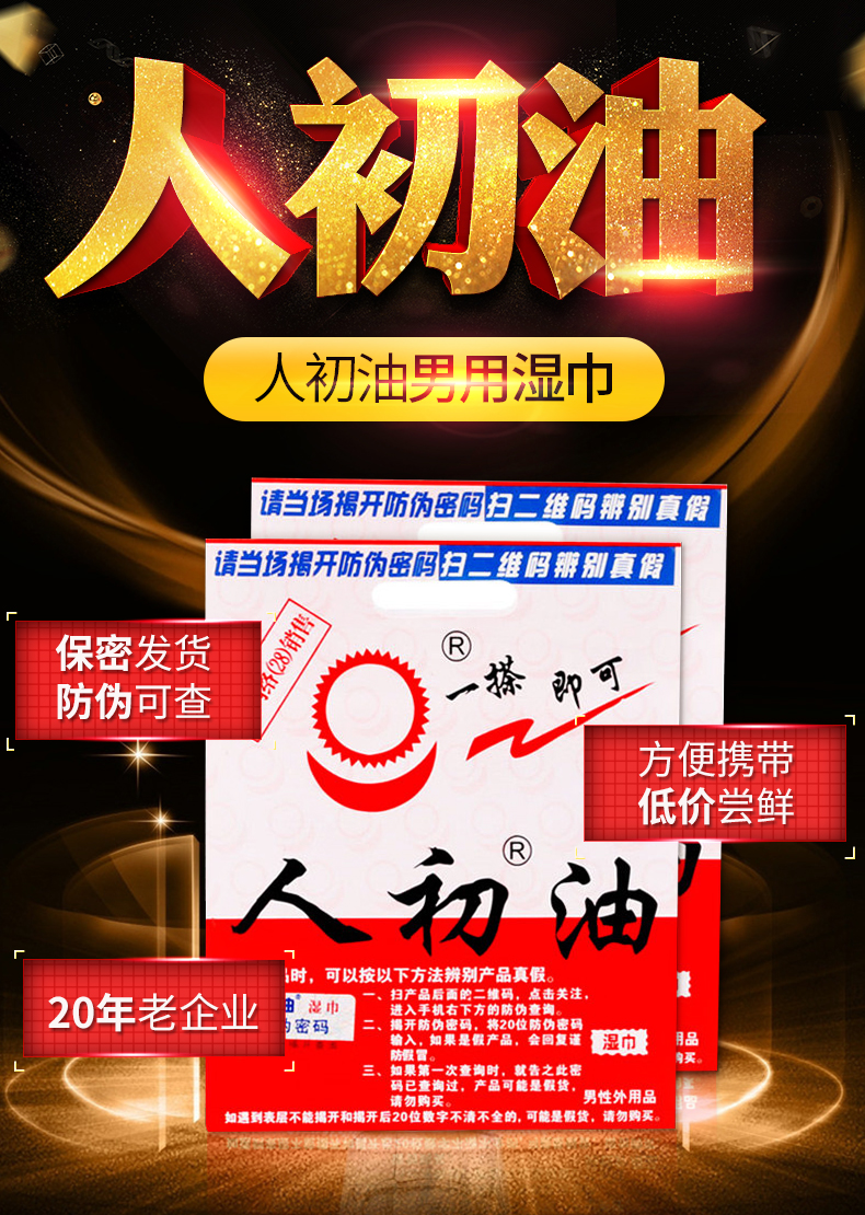 人初油 延时湿巾男用延时巾印度神油成人情趣用品 【10片装】
