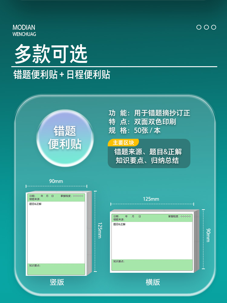 墨点文创 错题便利贴日程贴 学生错题修正修改试卷笔记便签纸作业学习用品