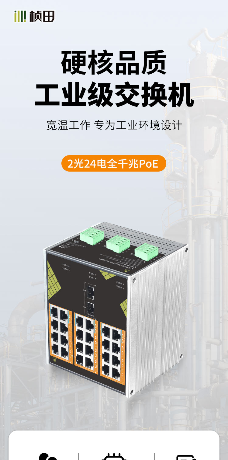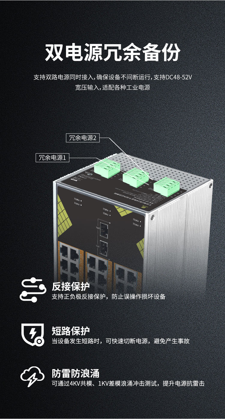工业级2光24电全千兆POE交换机 DC48~52V双冗余 IG1226FP-DC