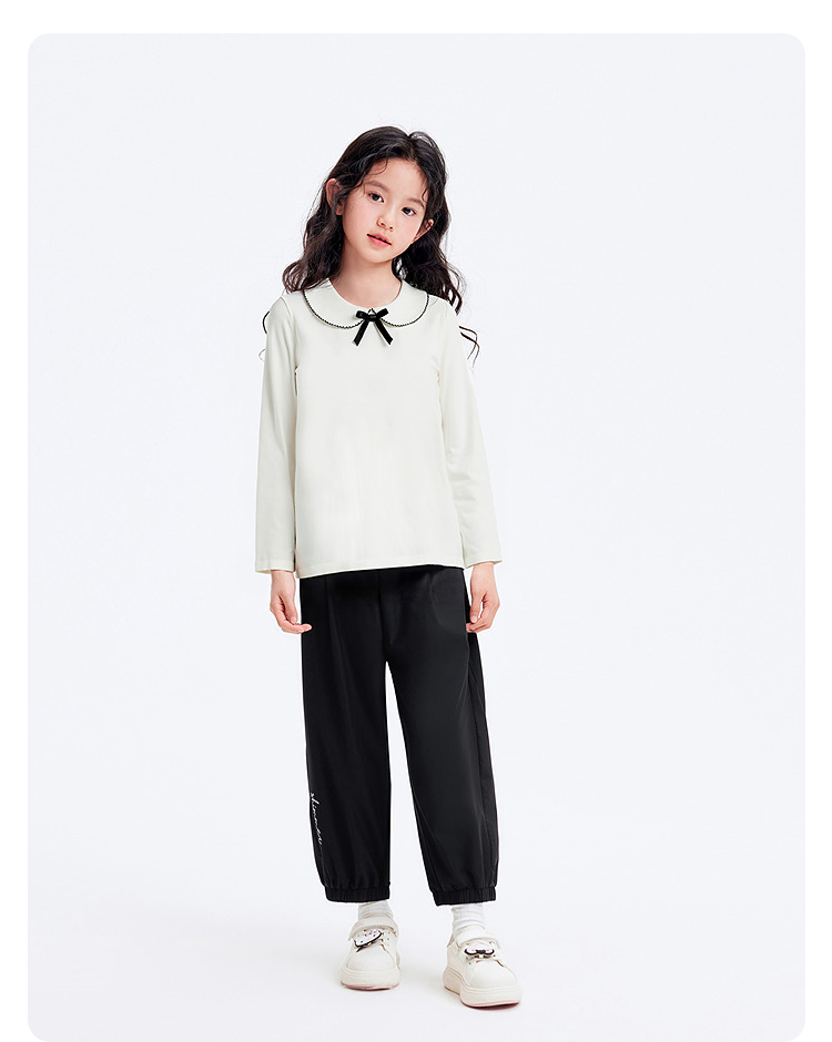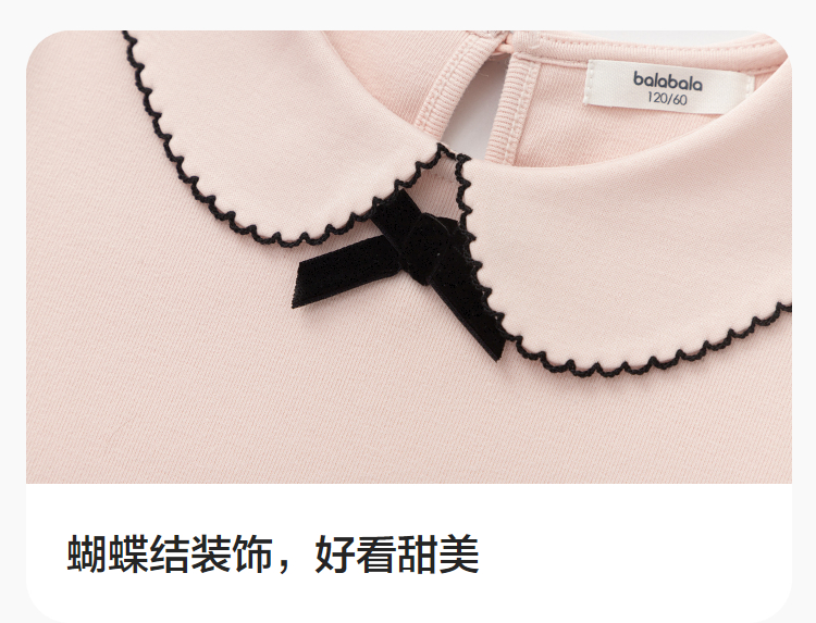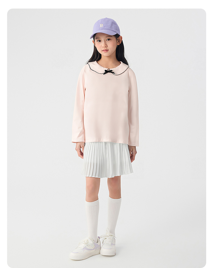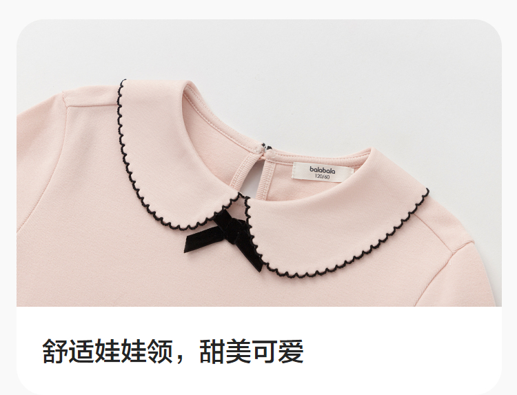 巴拉巴拉balaOne女童长袖t恤儿童2025新款秋甜美娃娃领内搭上衣萌