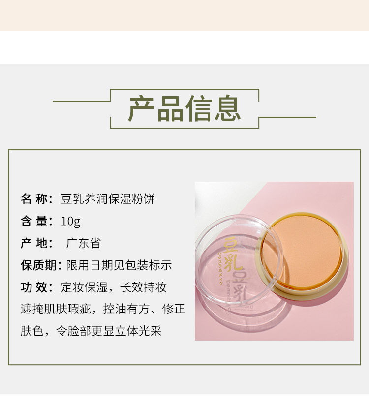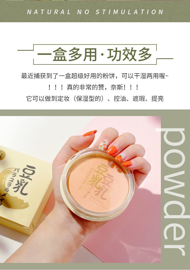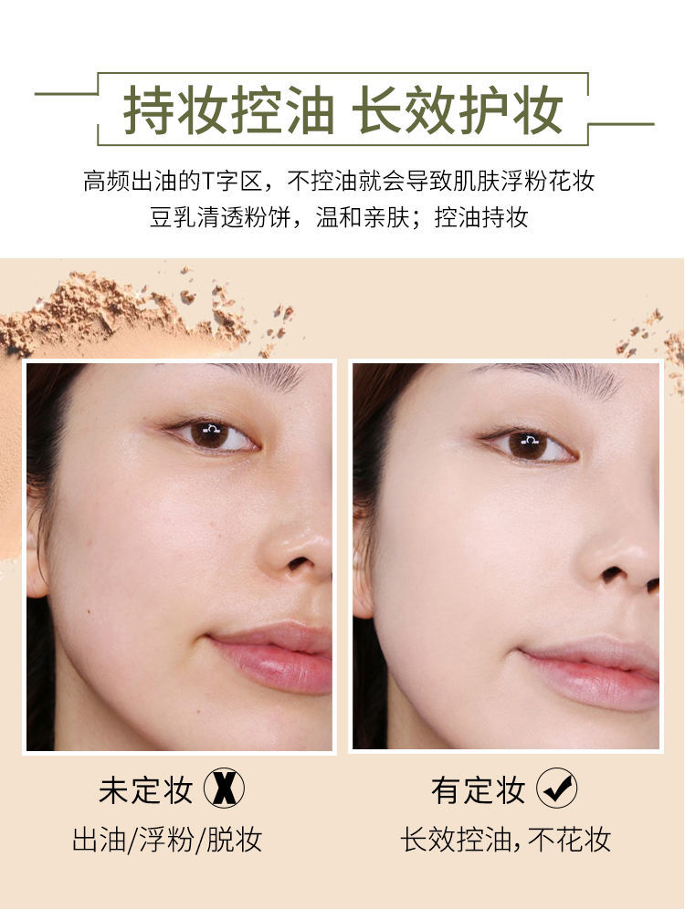 【9.9限时秒杀】磨皮豆乳粉饼防水控油遮瑕隐形毛孔持久散粉蜜粉干湿两用学生平价