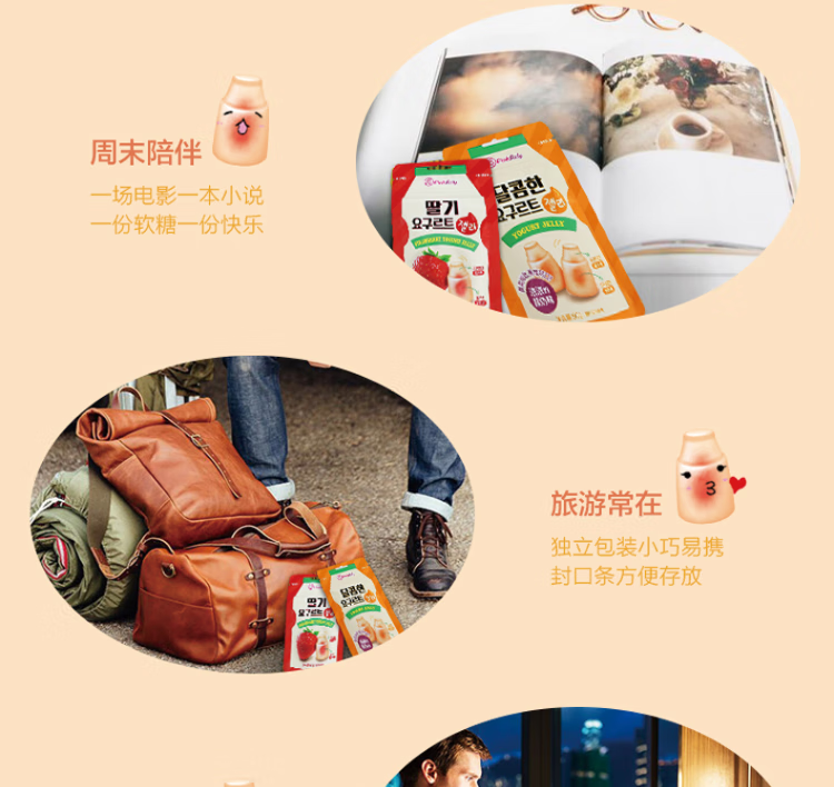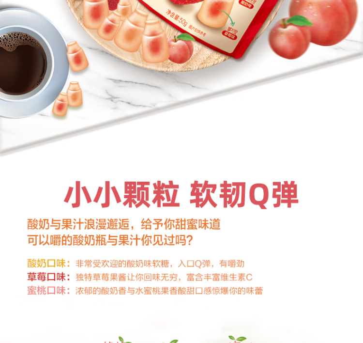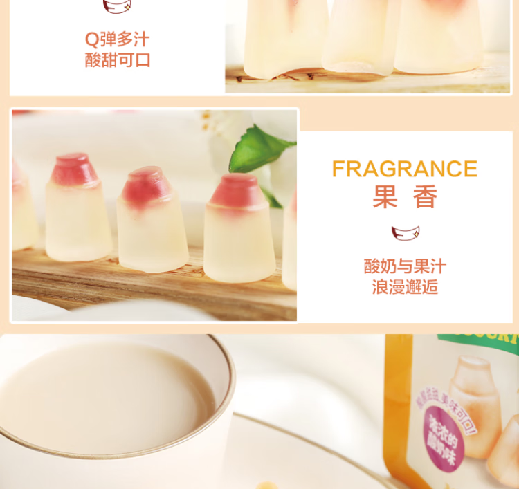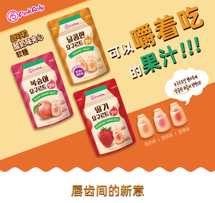 品可粒酸奶味蜜桃夹心软糖50g/袋