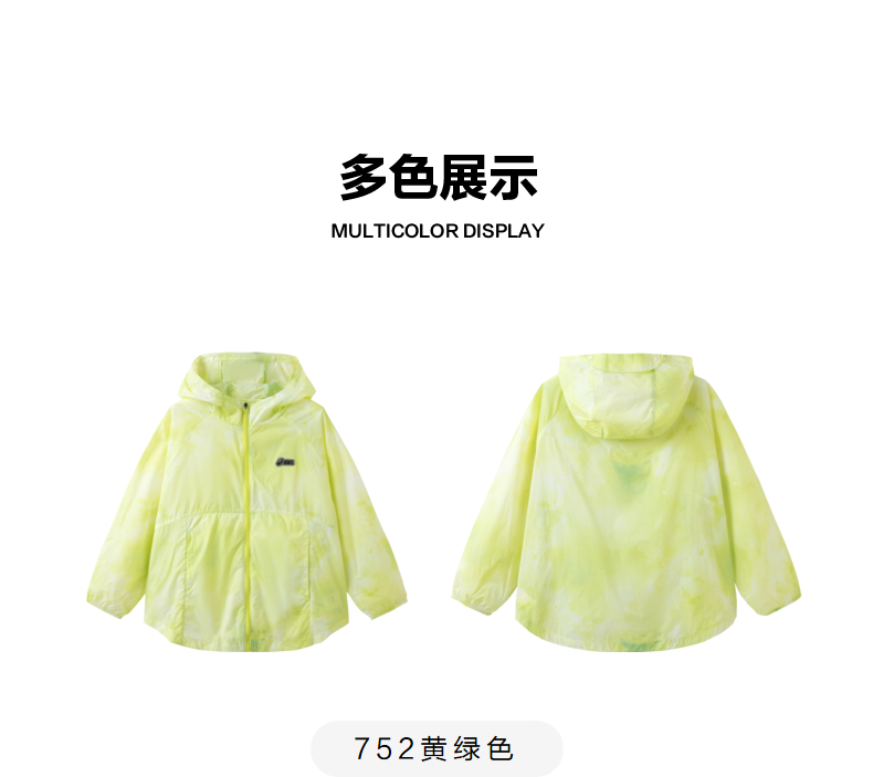 ASICS/亚瑟士童装2024儿童斗篷防晒服夏季亮色防紫外线轻薄外套新