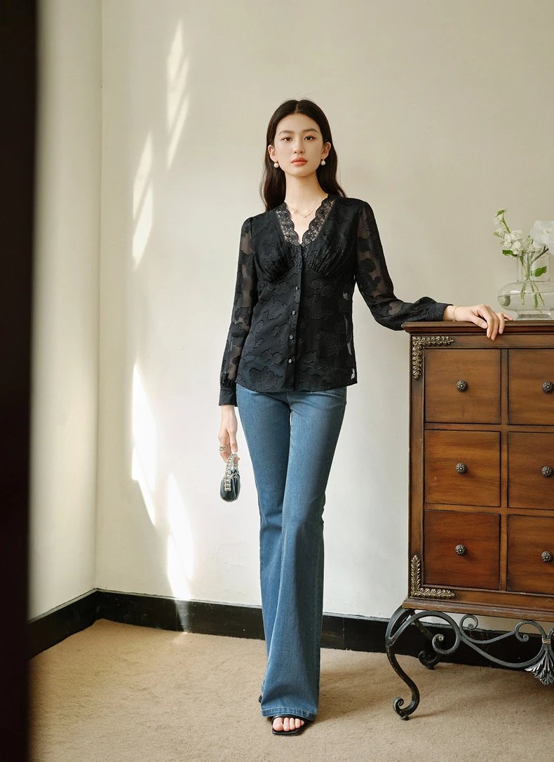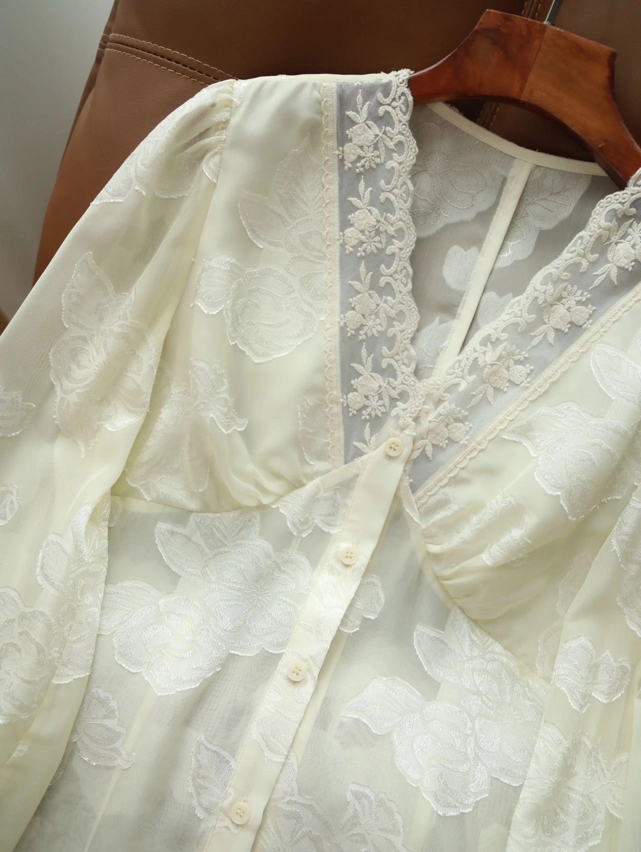 LPIUTY品牌直发⚠️贵妇团⚠️Dio*r官网在售同款蕾丝面料⚠️巴洛克风收腰蕾丝上衣⚠️原厂渠道❗️法国进口蕾丝面料⚠️