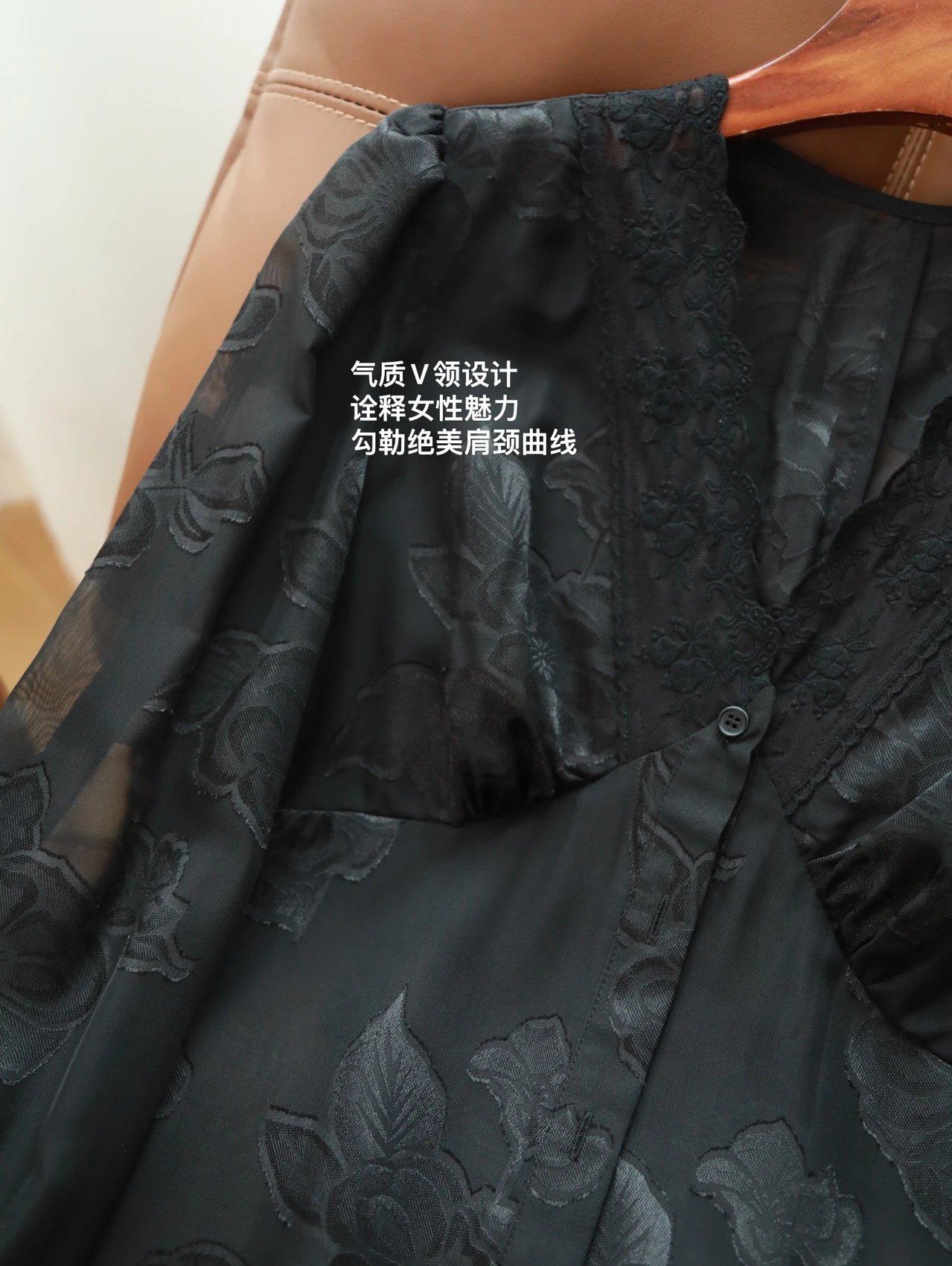 灯笼袖型和袖口压花边有效遮盖手臂肉肉