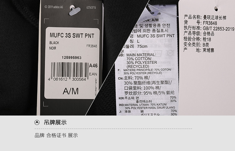 小李子ADIDAS阿迪达斯20-21赛季曼联第二客场运动足球长裤FR3848