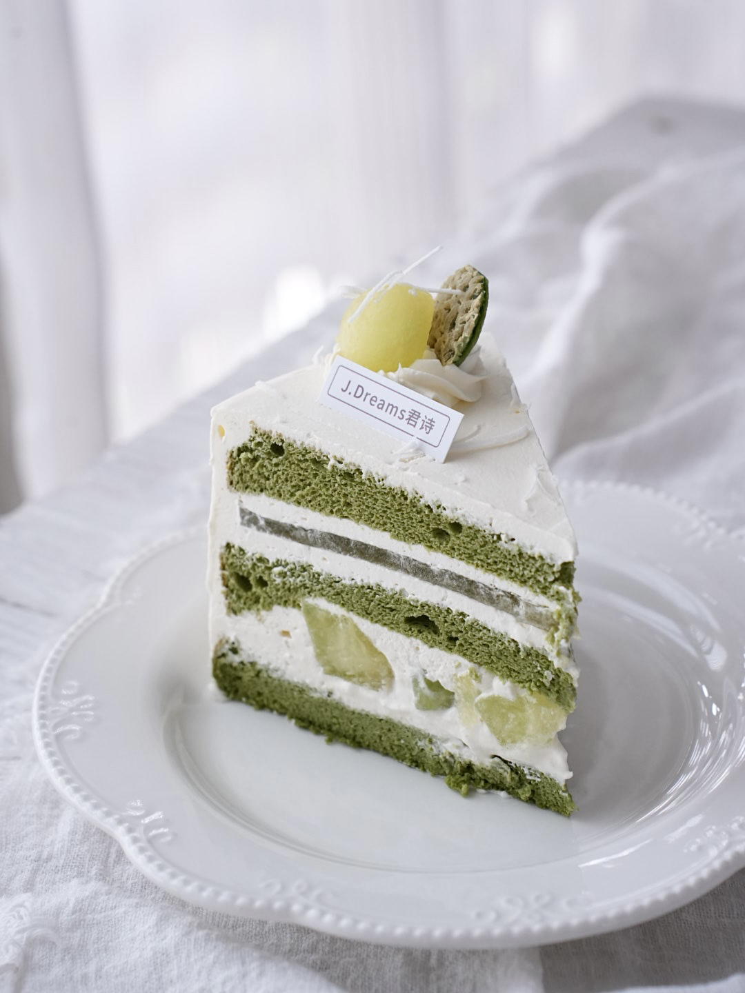 小麦粉,鸡蛋,淡奶油,抹茶粉,玫珑蜜瓜,茉莉花茶,玉米油,柠檬汁,糖,蜂蜜,吉利丁