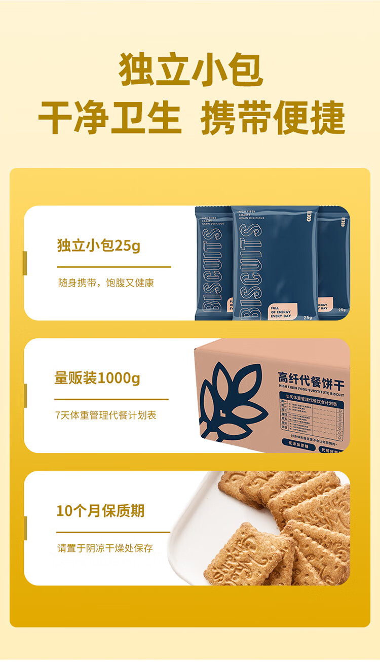 【暴肌独角兽 高纤维代餐饼干】无添加蔗糖全粗粮早餐饱腹高纤杂粮饼干休闲零食 高纤代餐饼干1箱 1kg