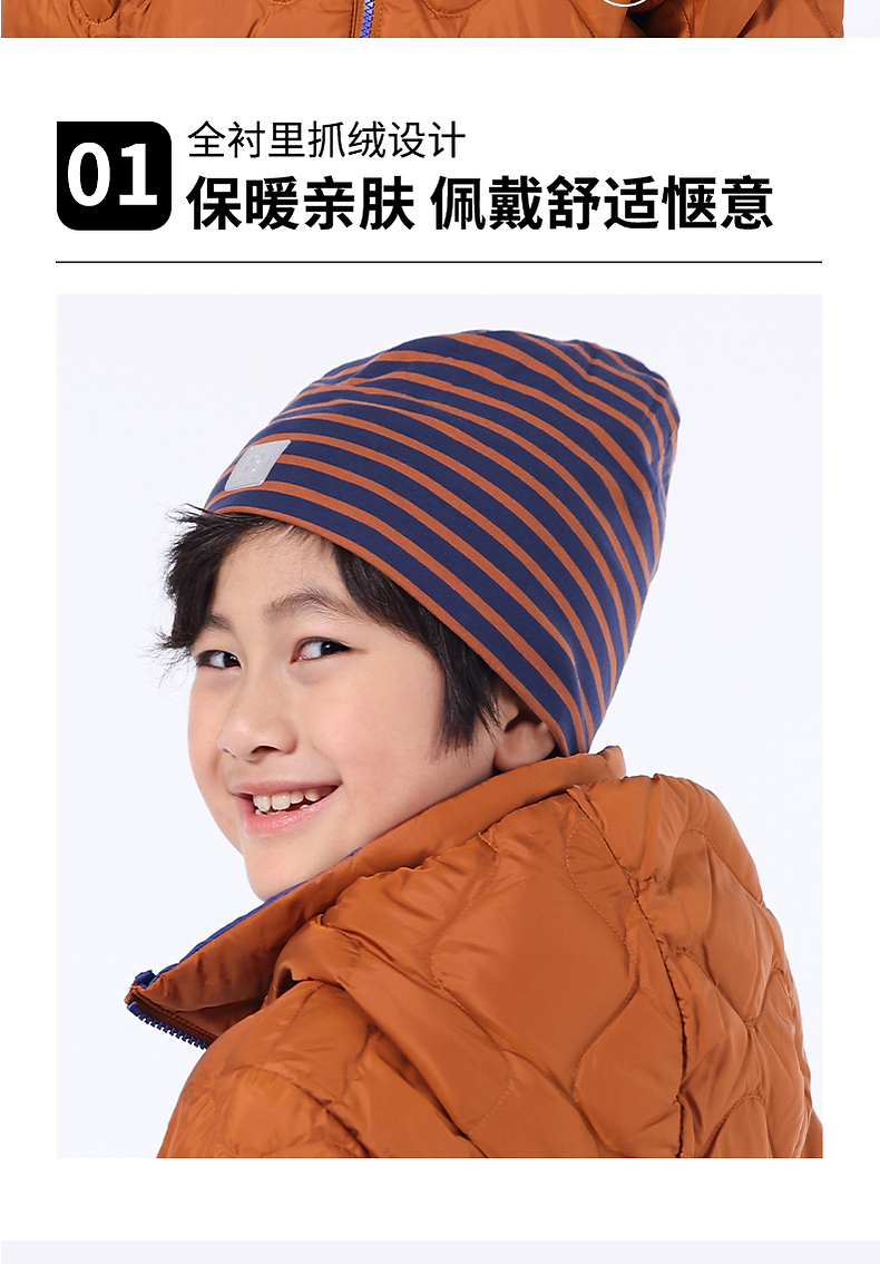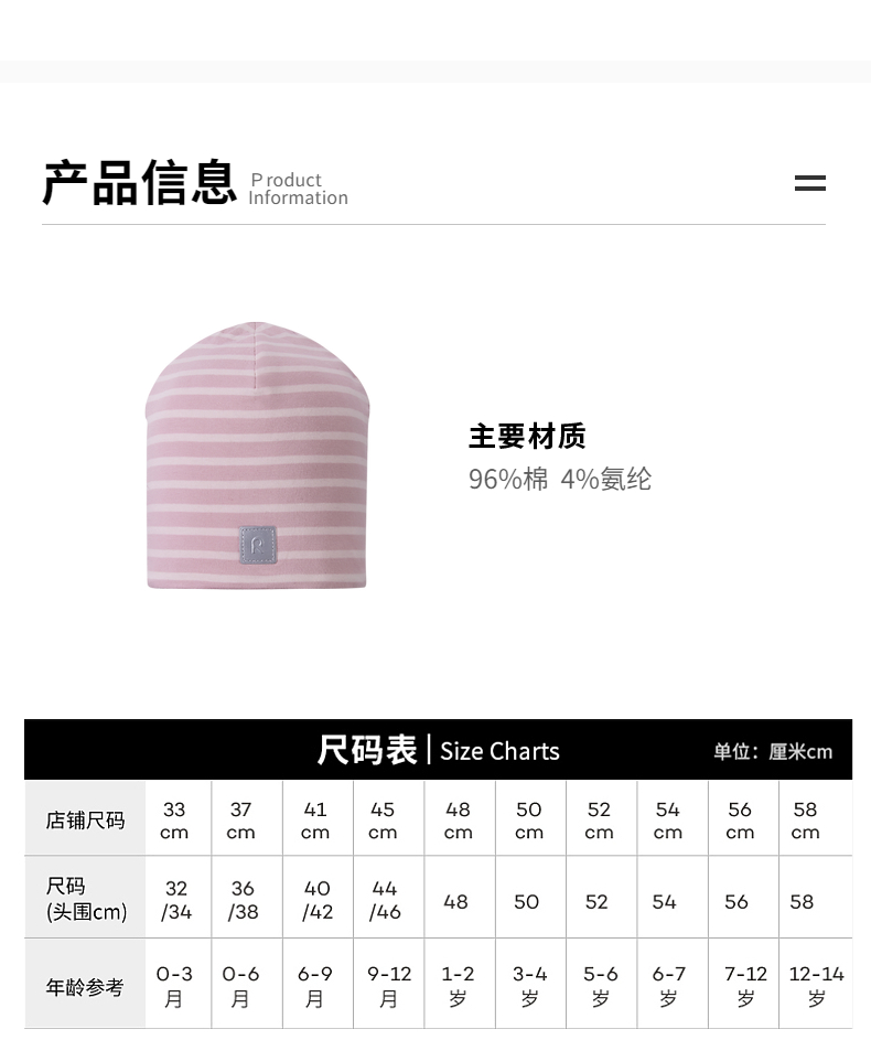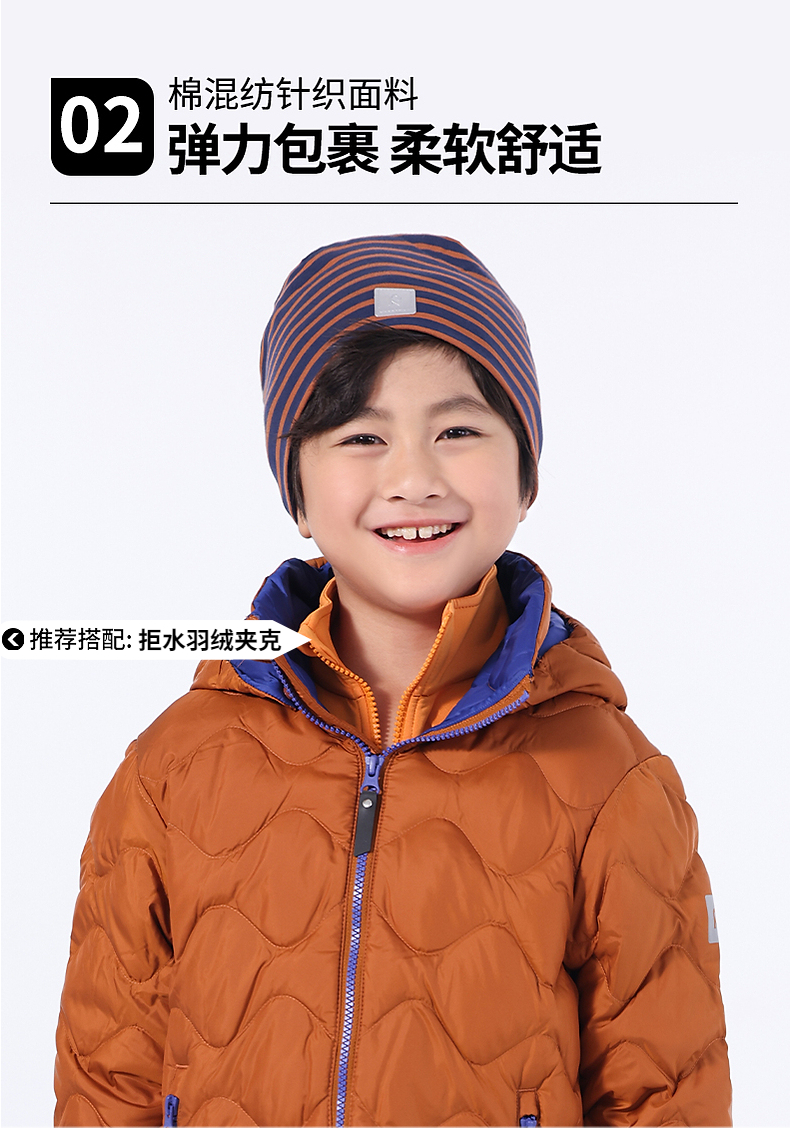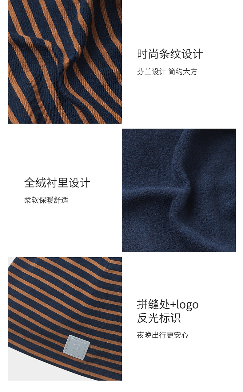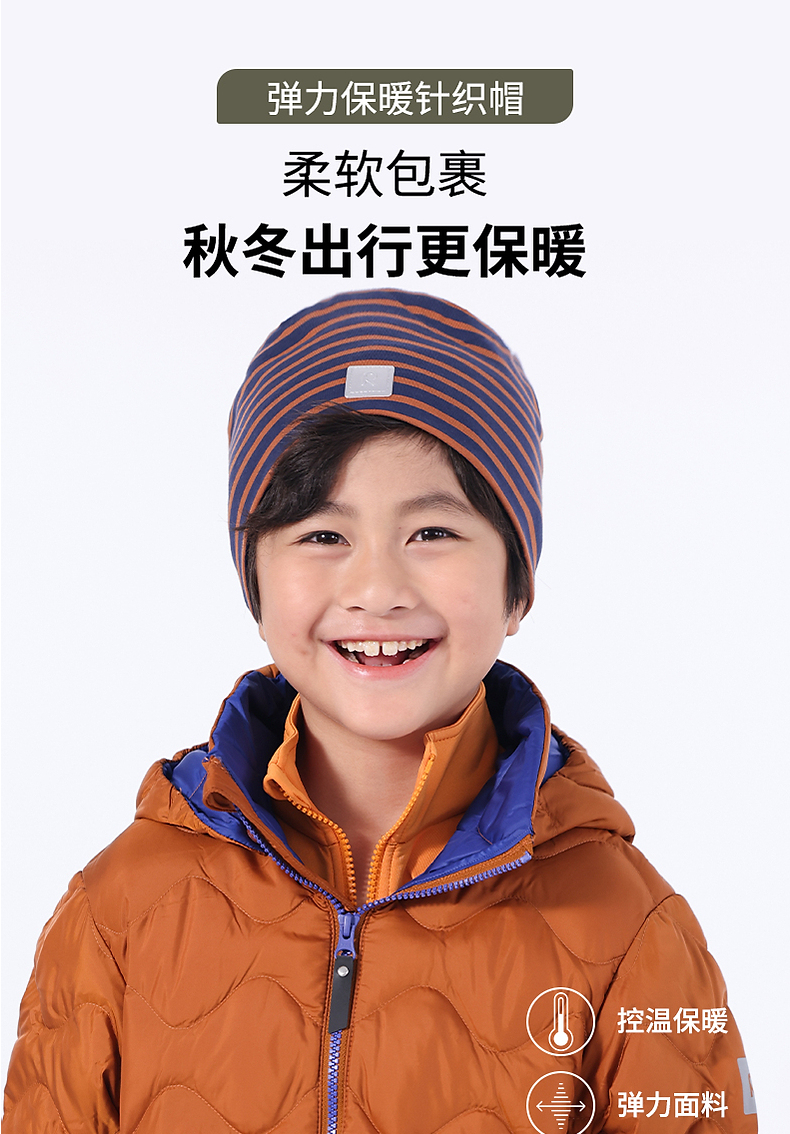 reima男女儿童棉针织帽大童早秋新款条纹弹力保暖抓绒无檐帽