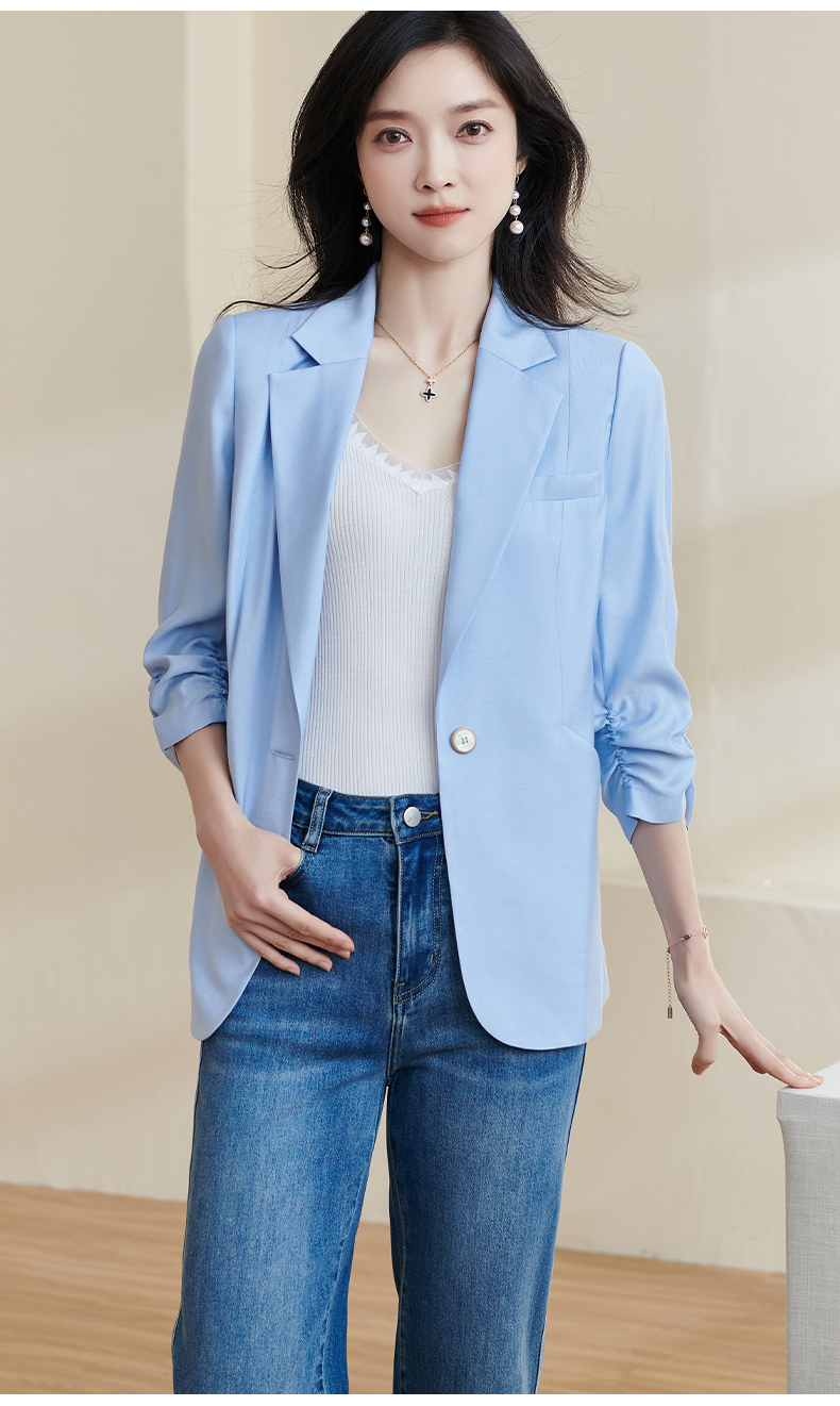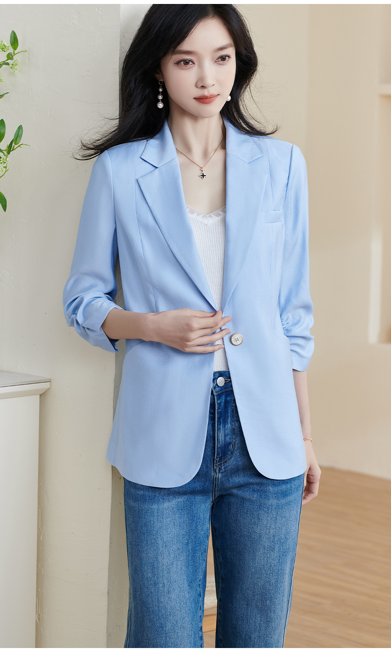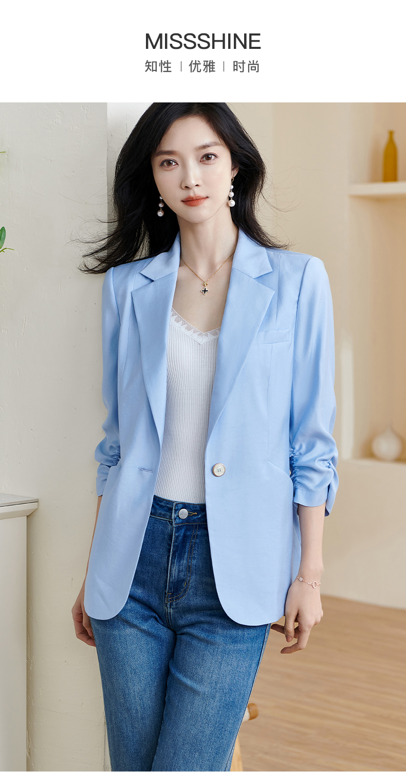 剩S/M/XXL 米思阳2025夏季新款时尚气质ol一粒扣通勤简约七分袖西装外套1388