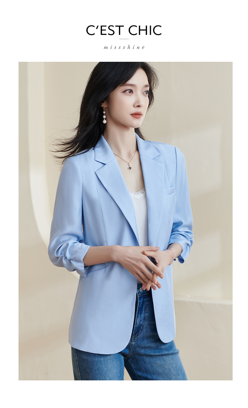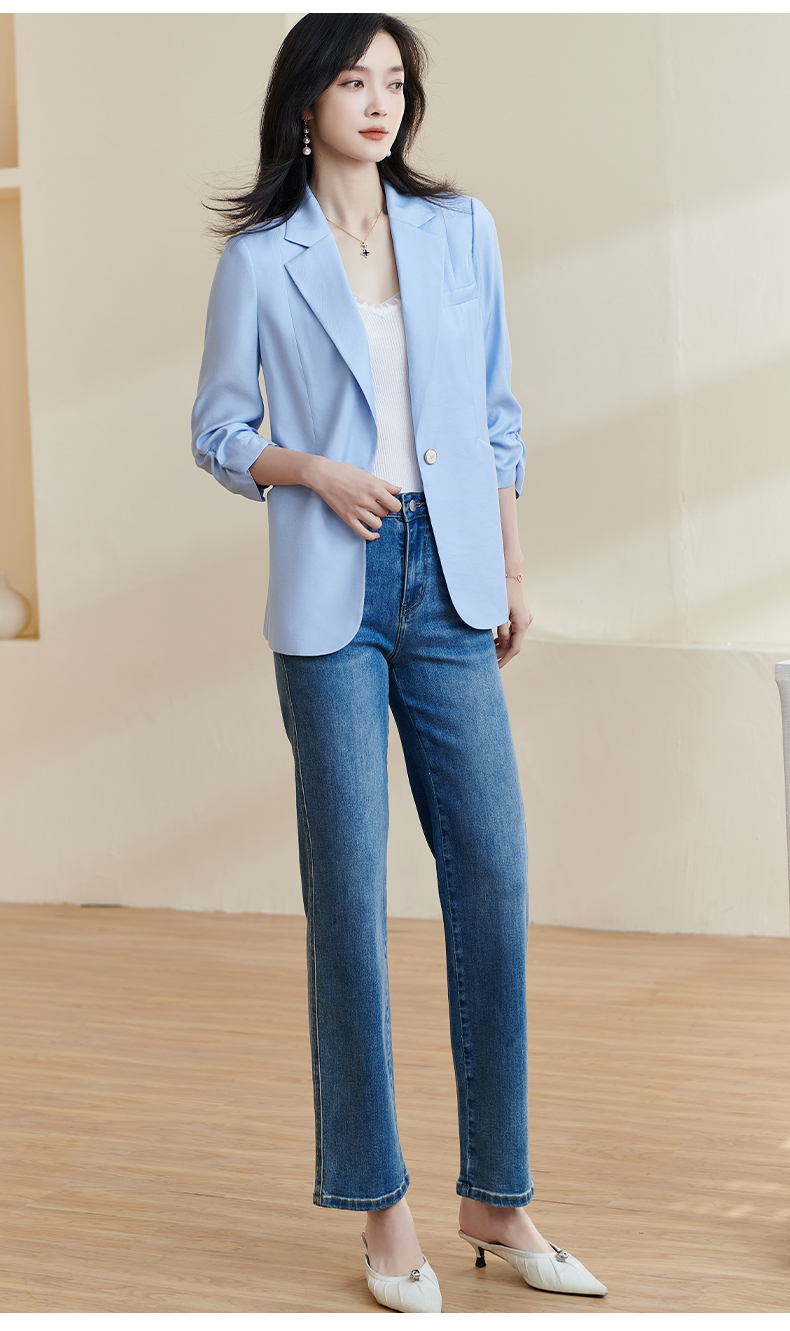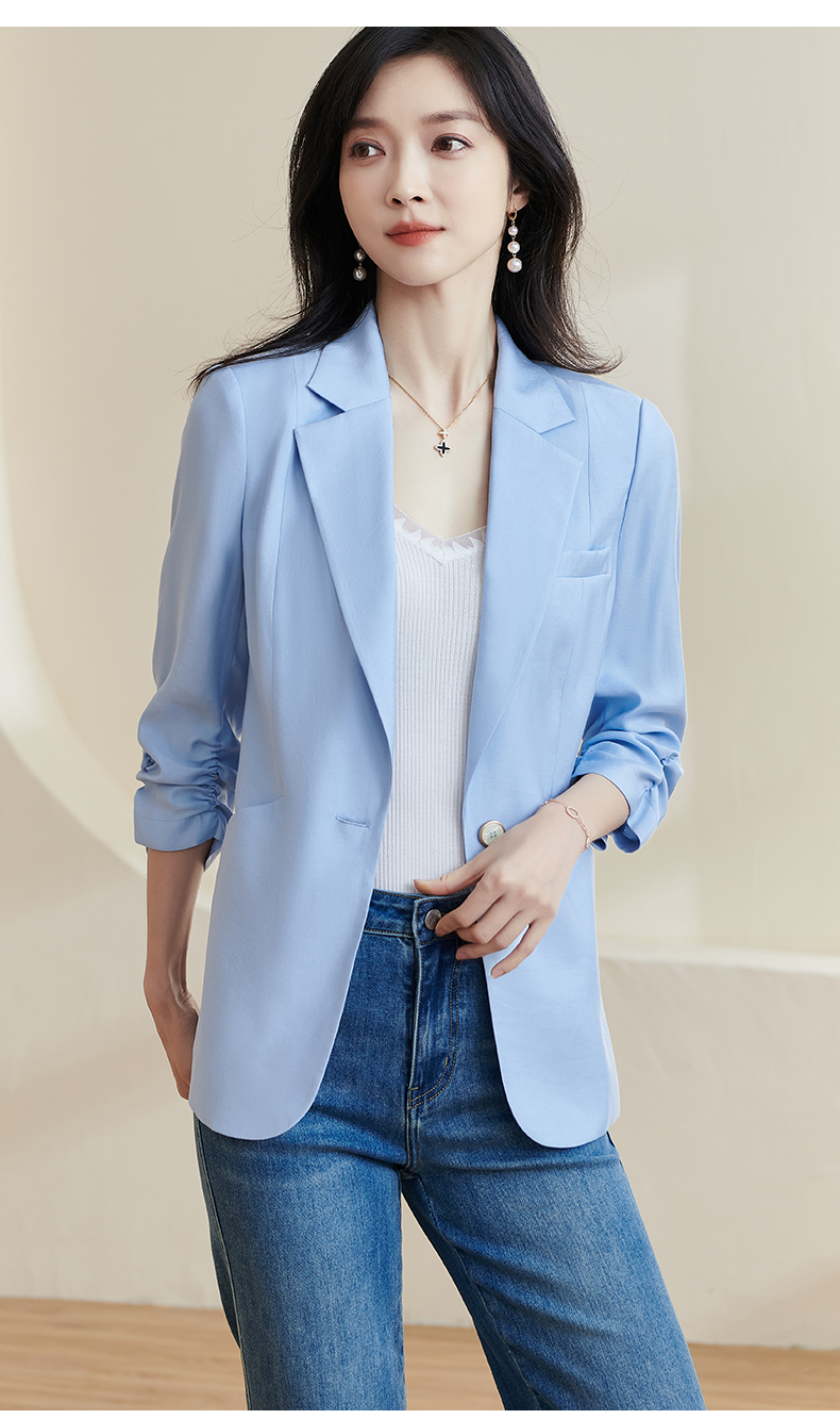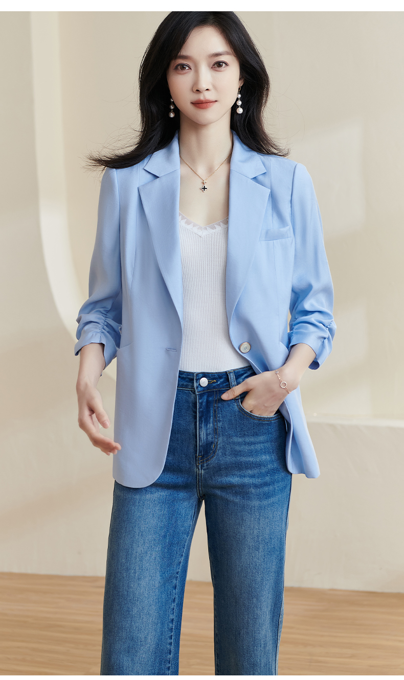 剩S/M/XXL 米思阳2025夏季新款时尚气质ol一粒扣通勤简约七分袖西装外套1388