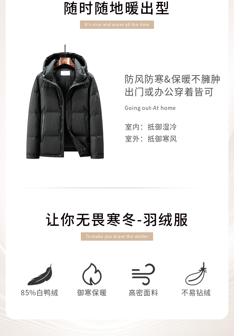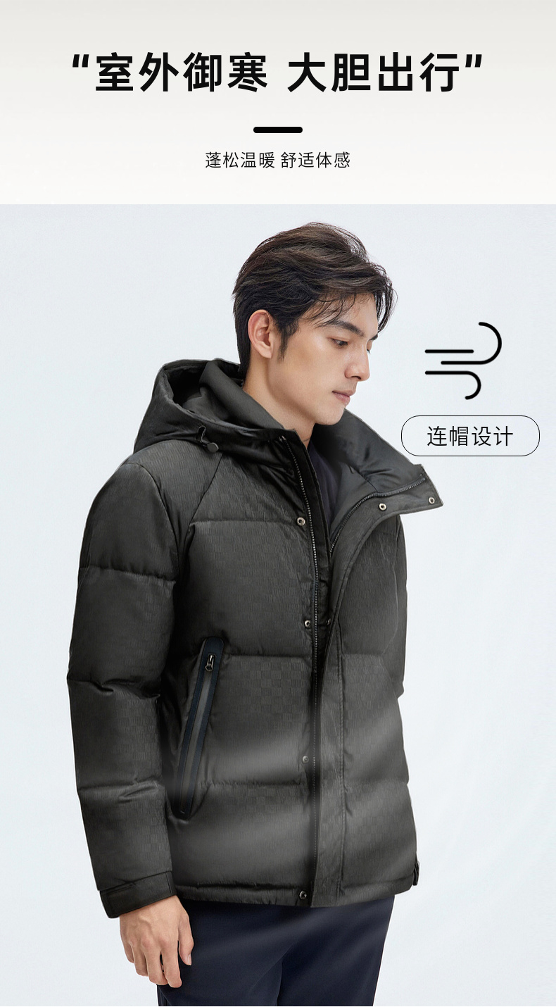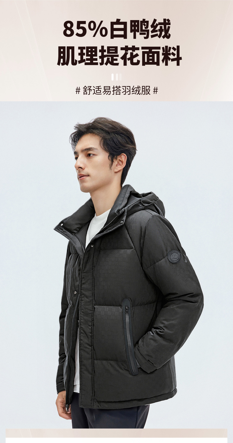 【门店新品&白鸭绒】圣得西男羽绒服25冬季时尚提花连帽羽绒外套