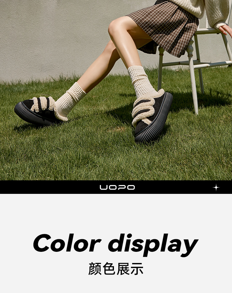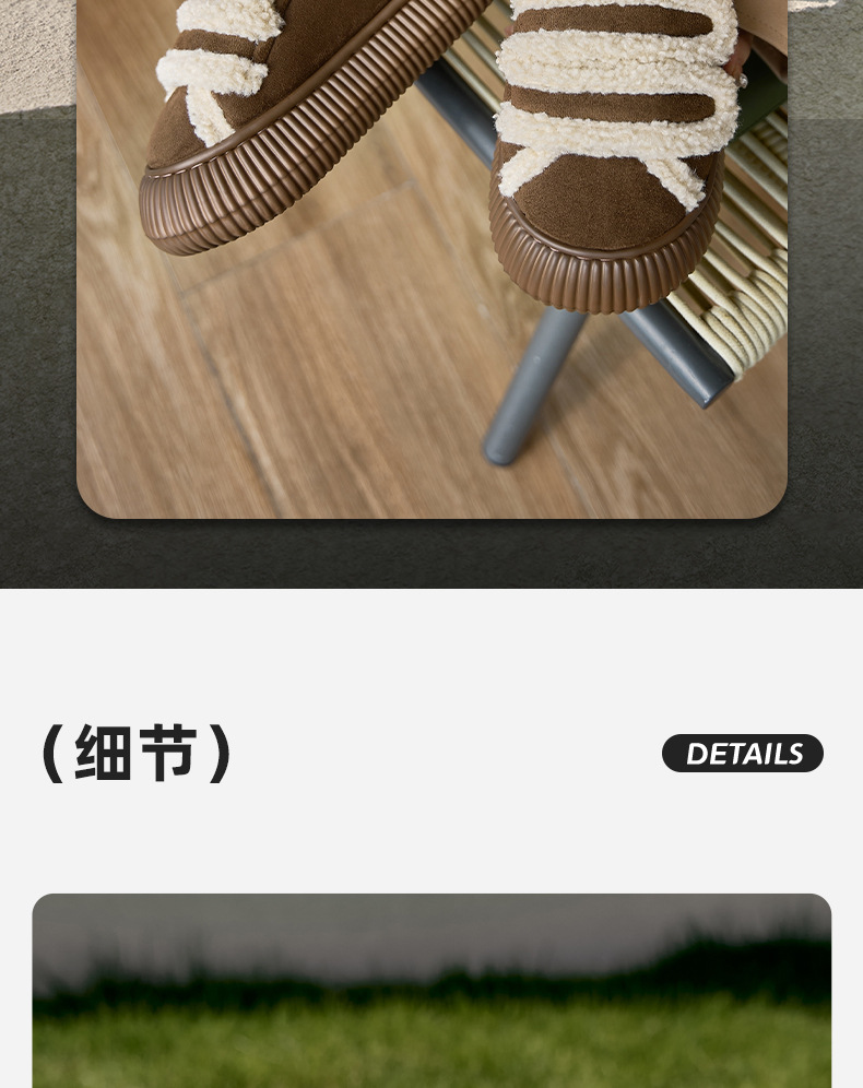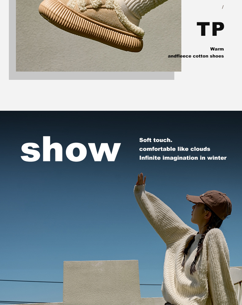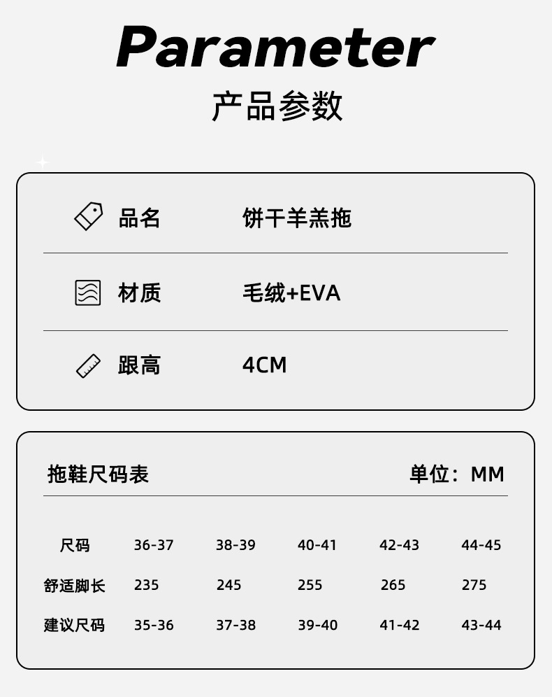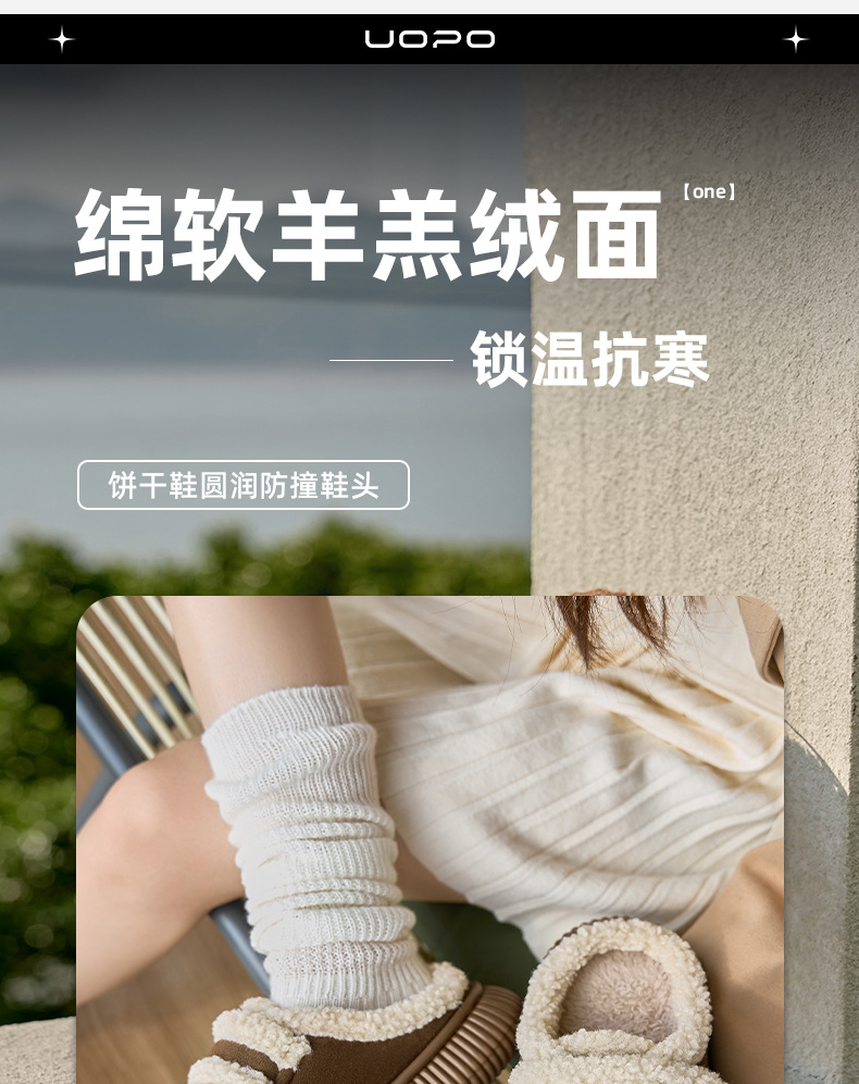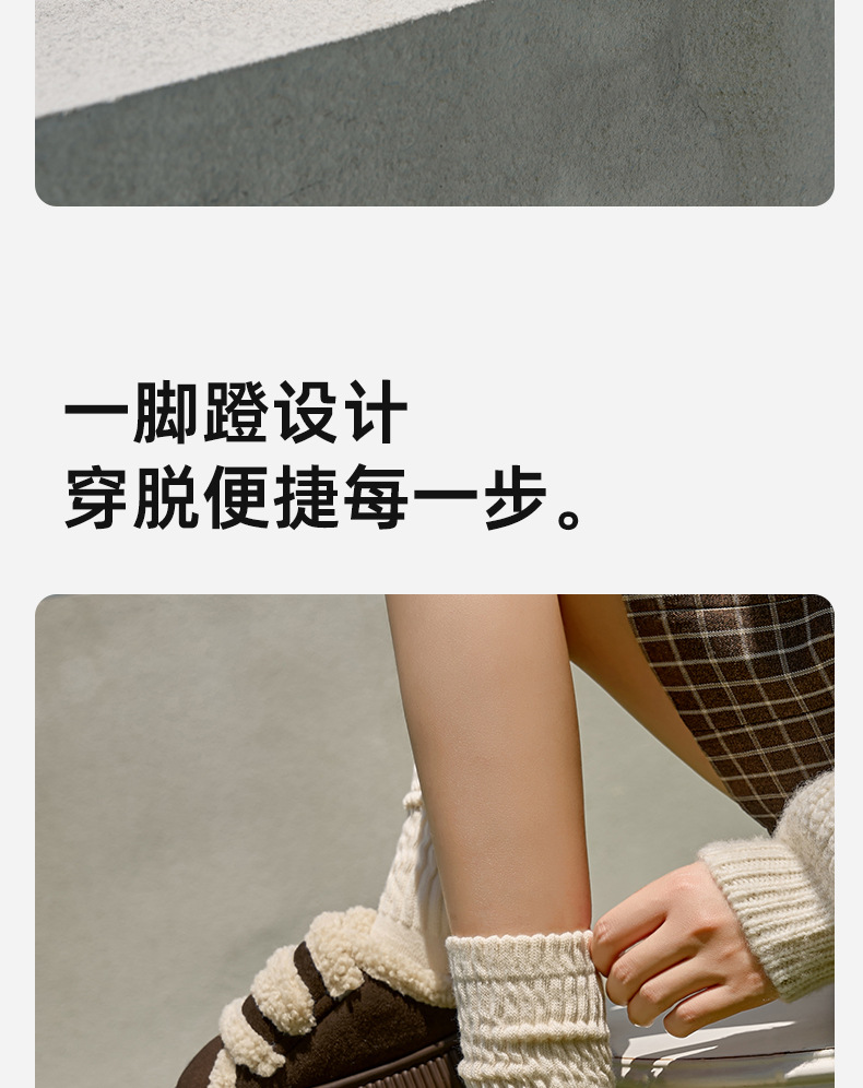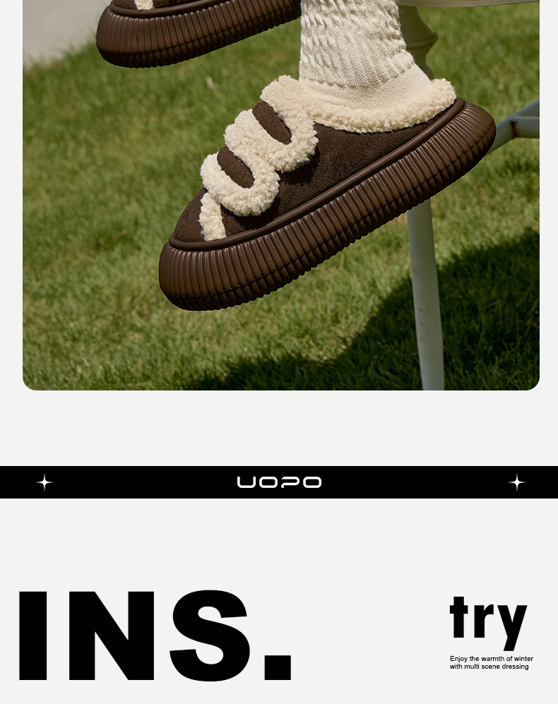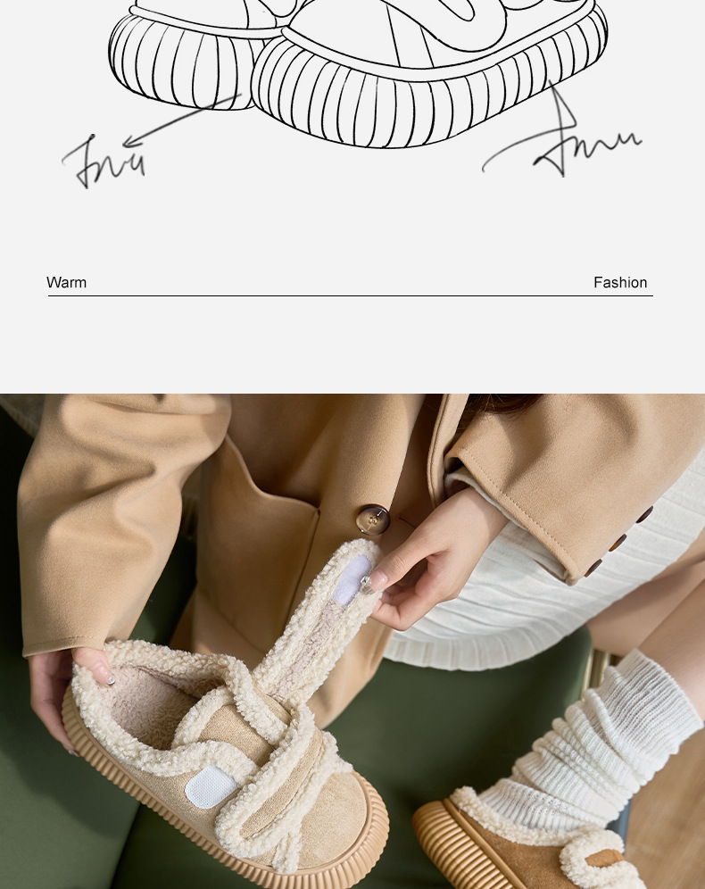 【行走小暖炉! 魔术贴饼干鞋】柔软羊羔绒面,锁温抗寒,圆润防撞鞋头,耐磨防滑打底,4cm厚底,隐形增高秒变大长腿,室内半拖棉鞋,外穿防滑家居棉拖鞋L