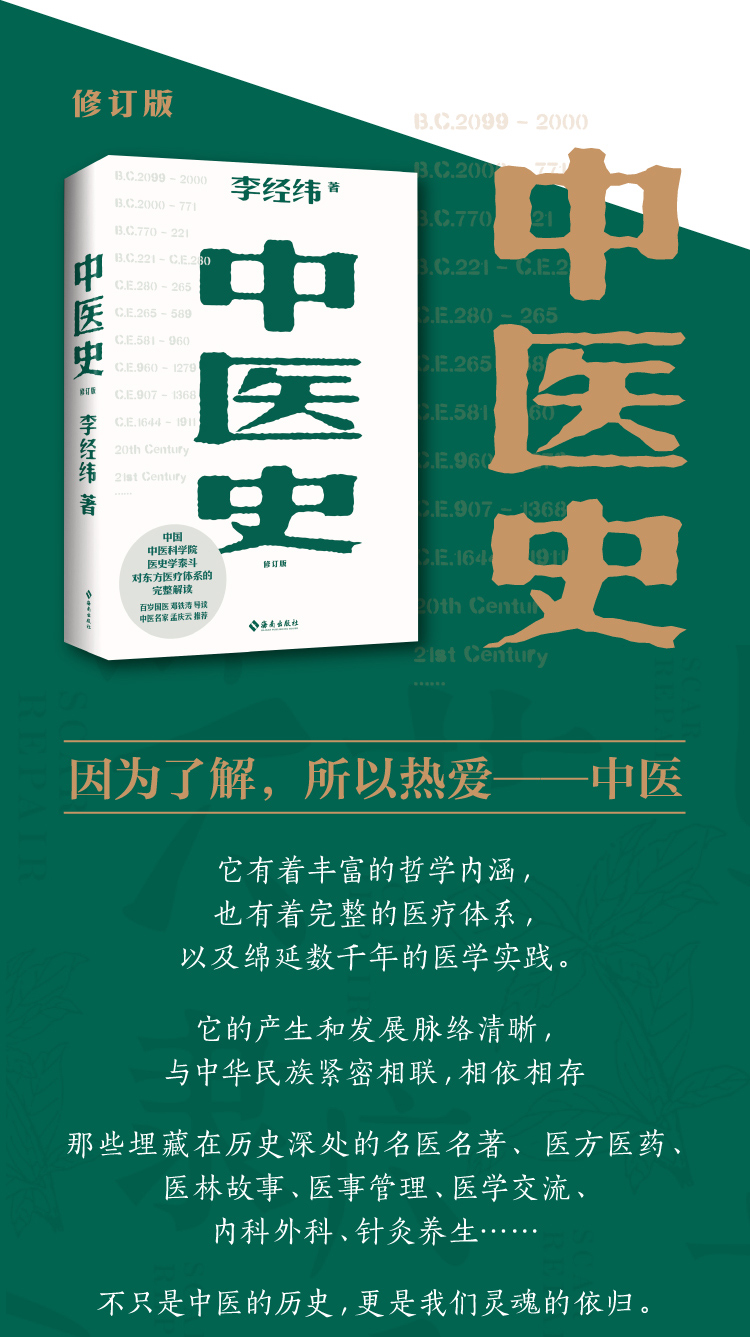 中医史:以第一手资料和古史记载、考古发现作为叙述的依据,将传统医学的一系列辉煌成就和发展脉络条理分明地罗列叙述