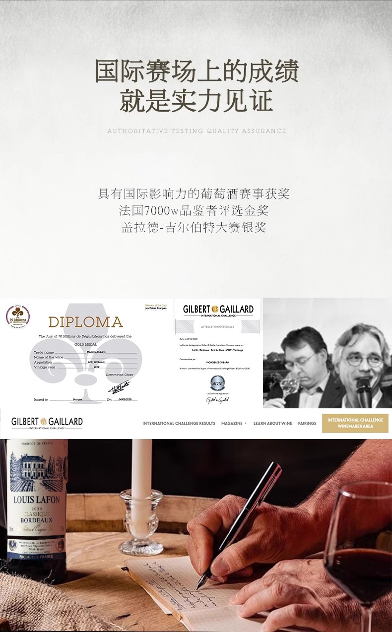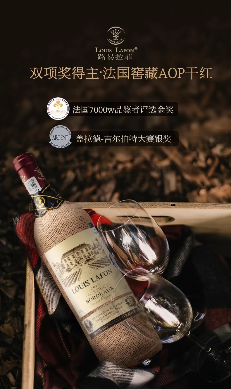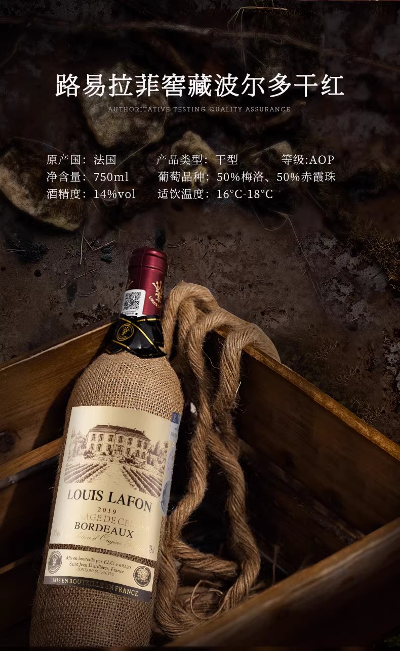 【中欧班列精选】法国进口路易拉菲LOUISLAFON/窖藏波尔多干红葡萄酒干型14%vol/750ml/瓶