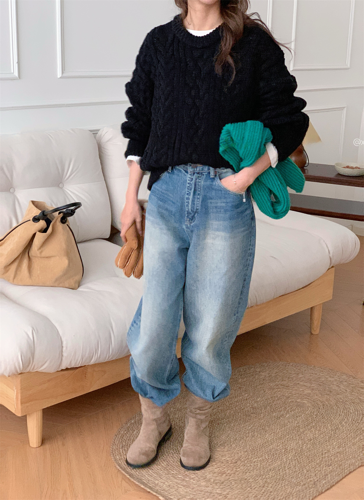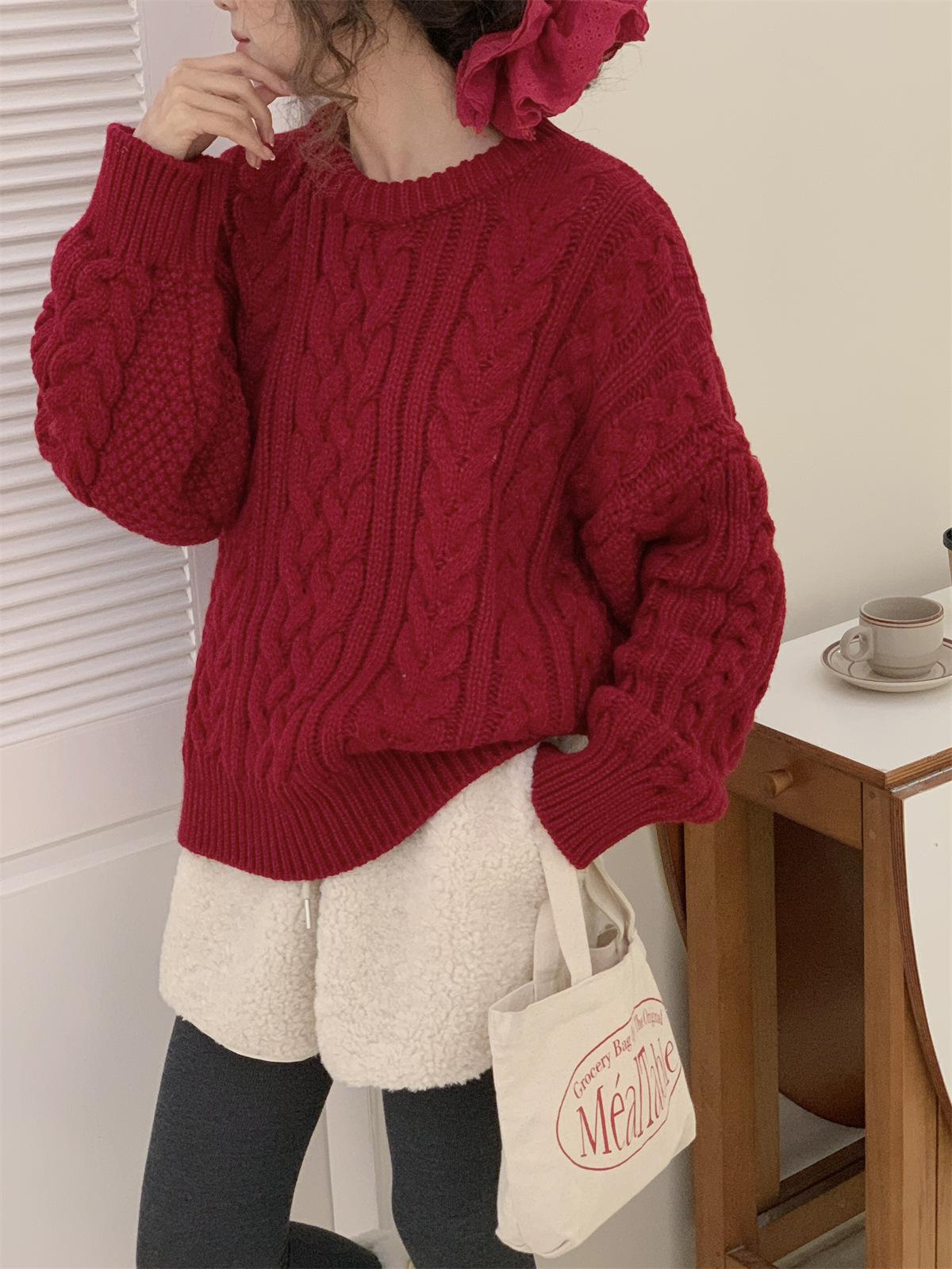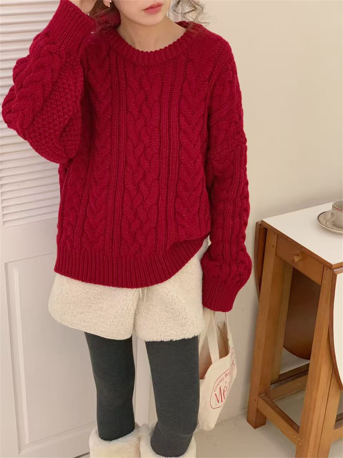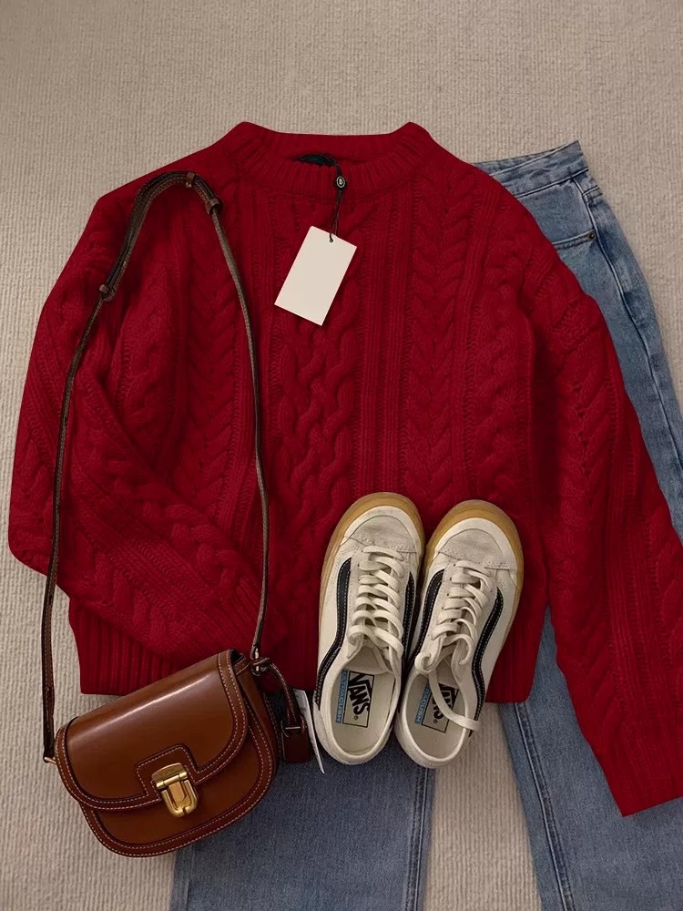 【YW】无忧购韩系复古浮雕麻花毛衣女秋冬慵懒纯色针织上衣2246#(截单后3-5天发货)