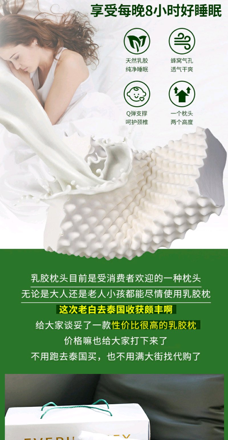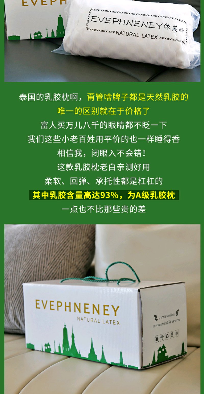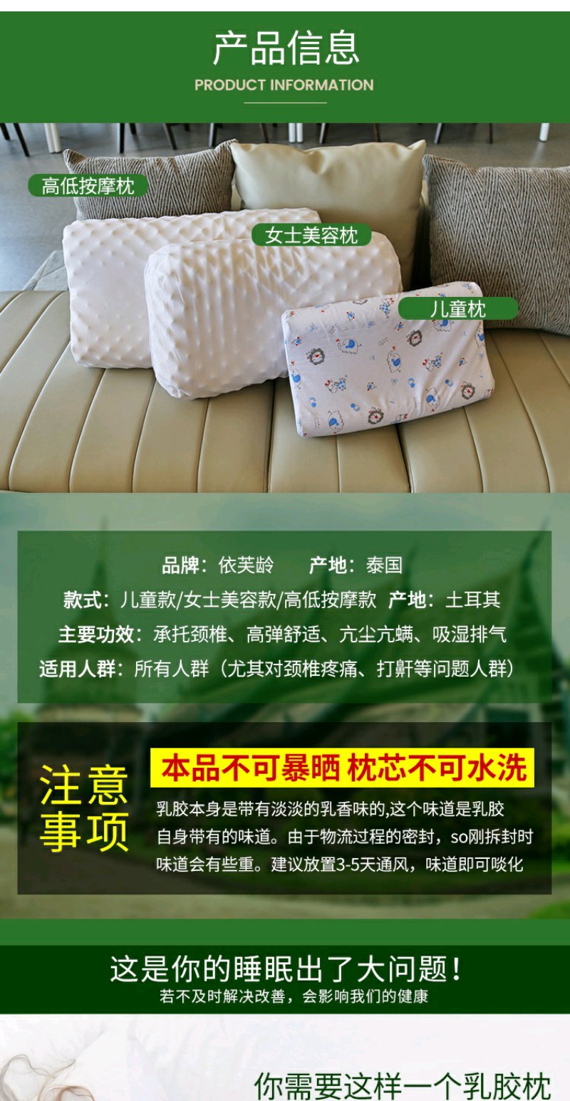 (超值)泰国依芙龄 乳胶枕 儿童婴儿枕头 成人枕