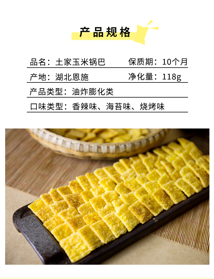 恩施土家 玉米锅巴118g/包 香辣味/海苔味/烧烤味